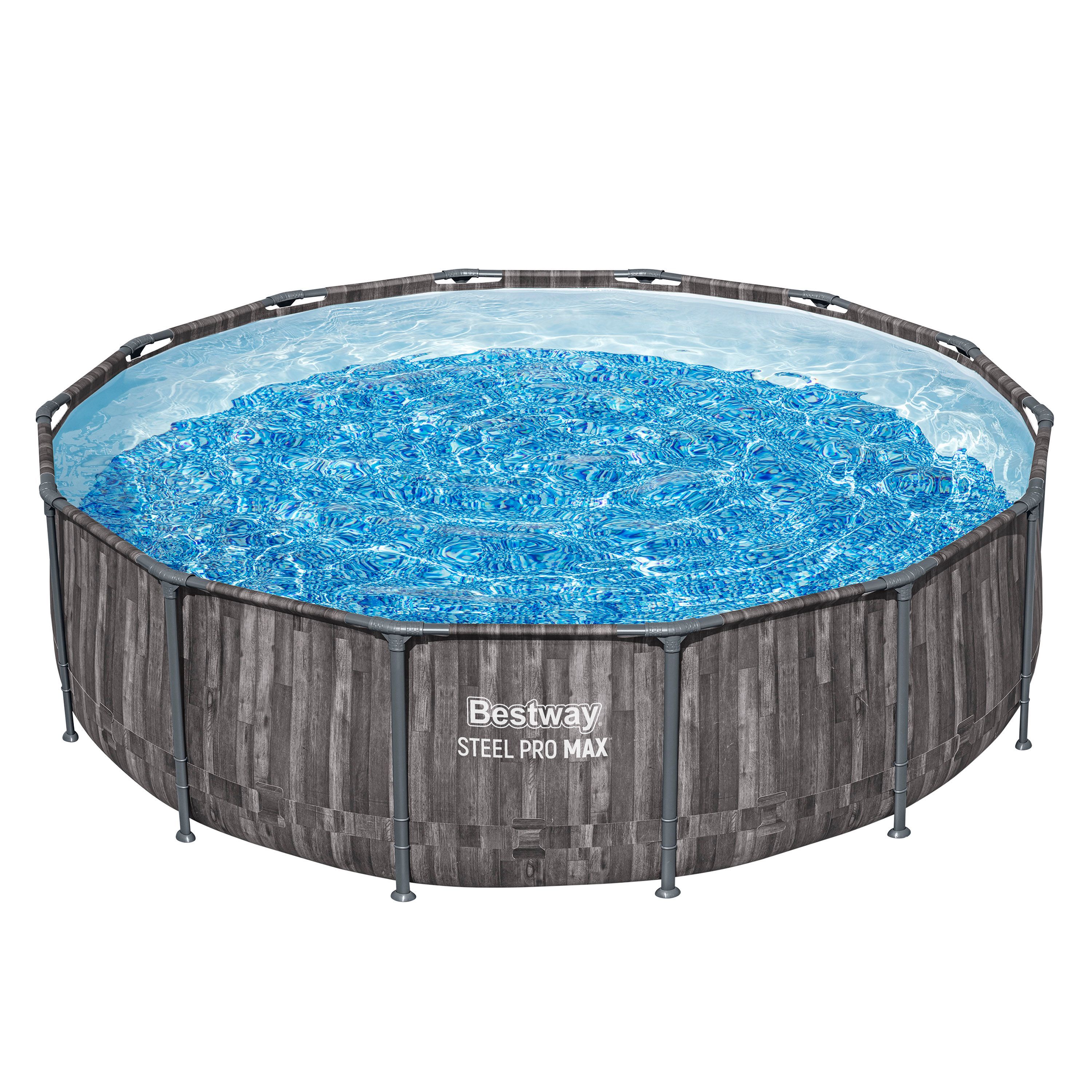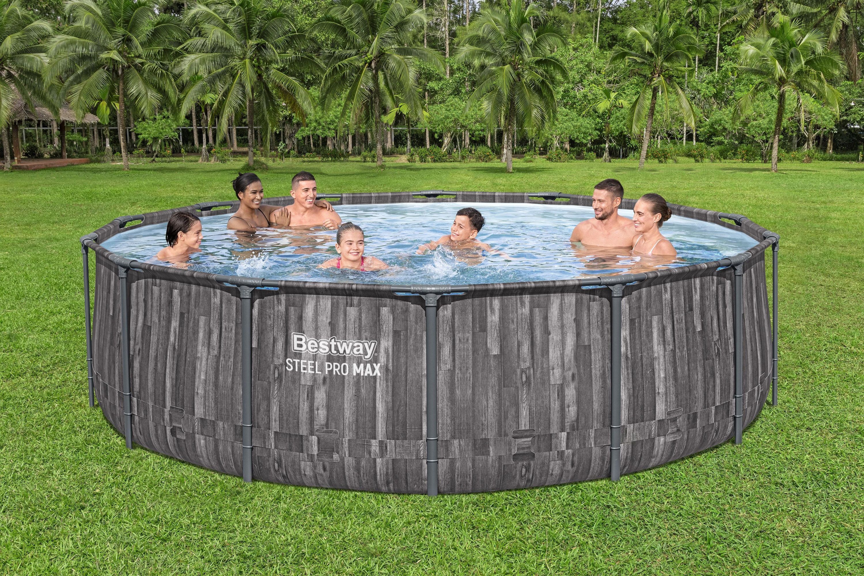 Bestway. Steel Pro MAX™ Solo Pool ohne Zubehör Ø 427 x 107 cm, Holz-Optik (Mooreiche), rund