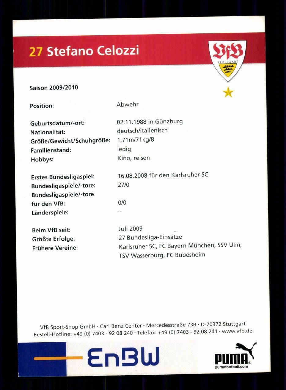 Stefano Celozzi Autogrammkarte VfB Stuttgart 2009-10 Original Signiert