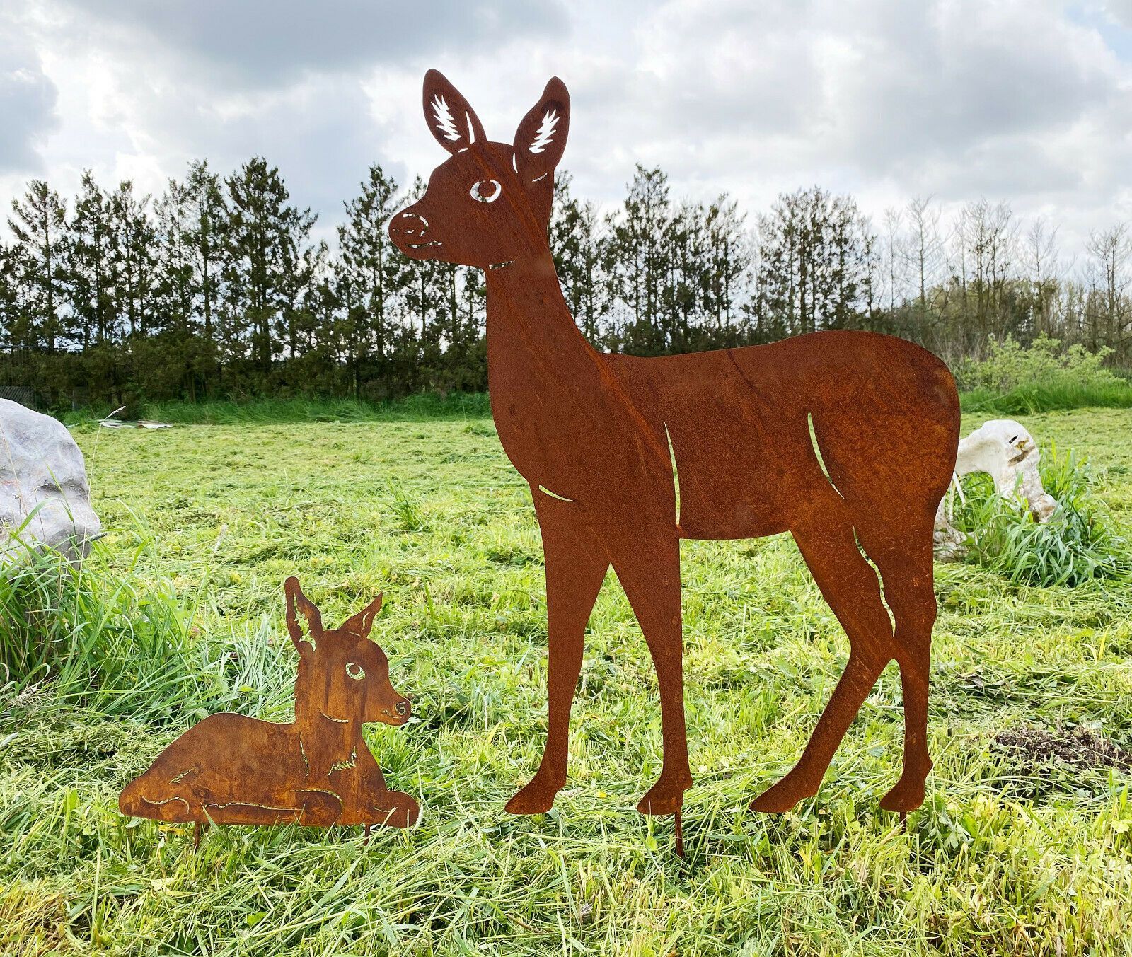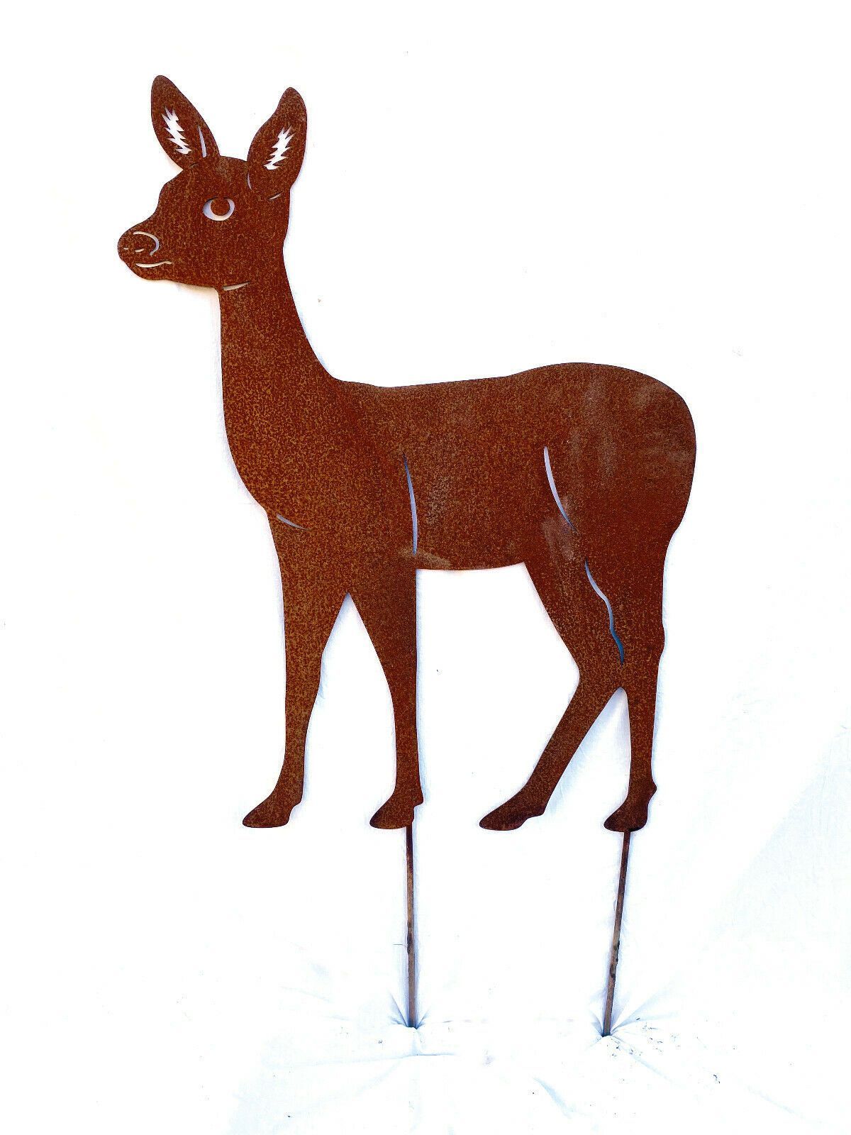 Stehendes Reh 80x62cm Gartenstecker Edelrost Rost Metall Rostfigur Hirsch Kitz