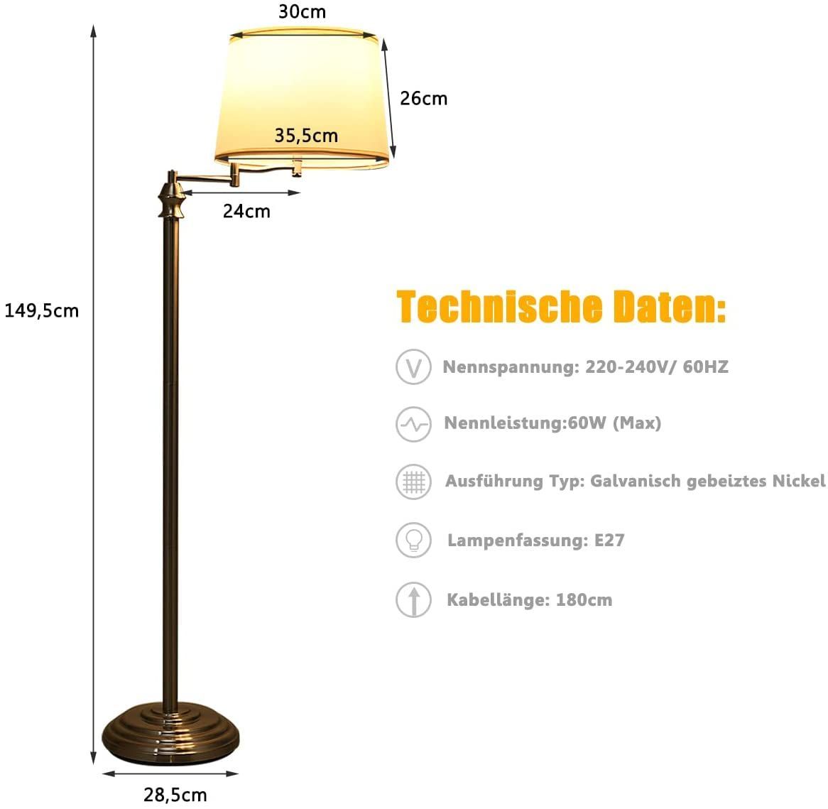Stehlampe Standleuchte Stehleuchte mit Basis & Lampenschirm zum Lesen Wohnzimmerlampe