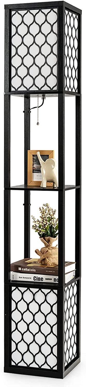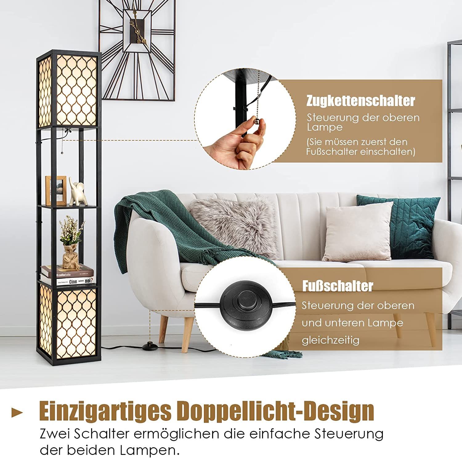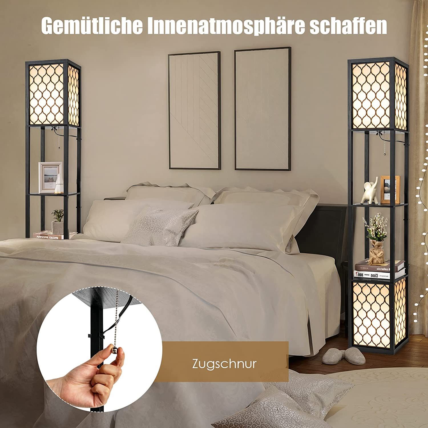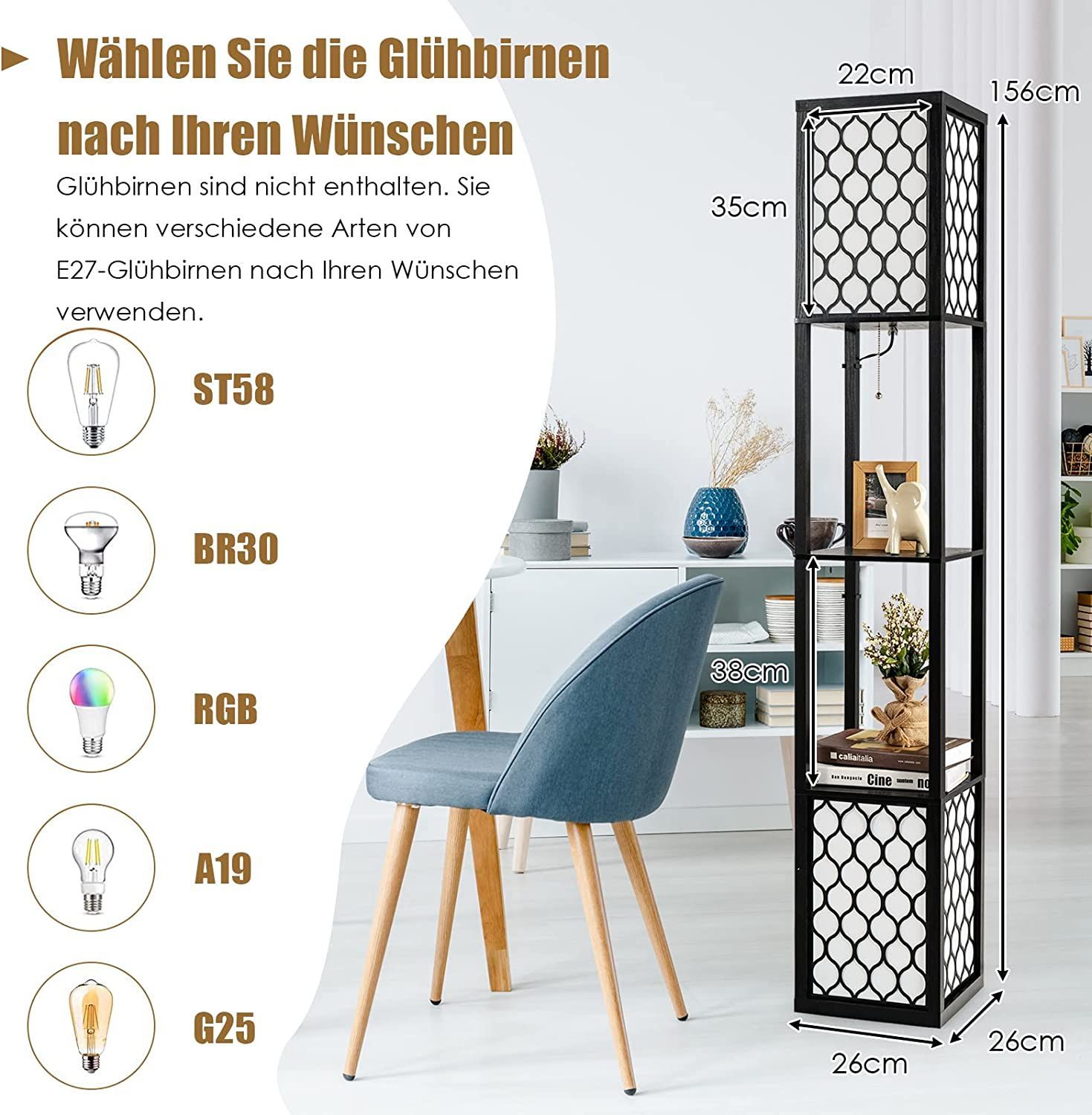Stehleuchte Regal 156 cm, Standleuchte Holz, E27 Stehlampe, Moderne Innenbeleuchtung
