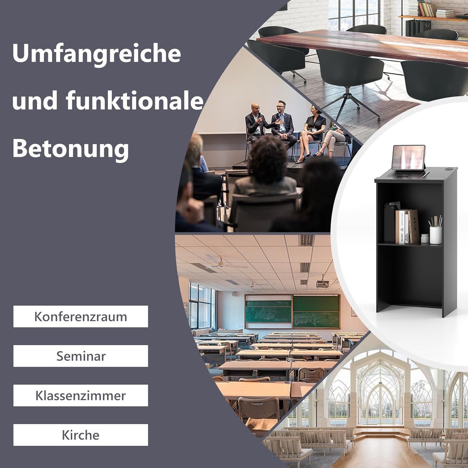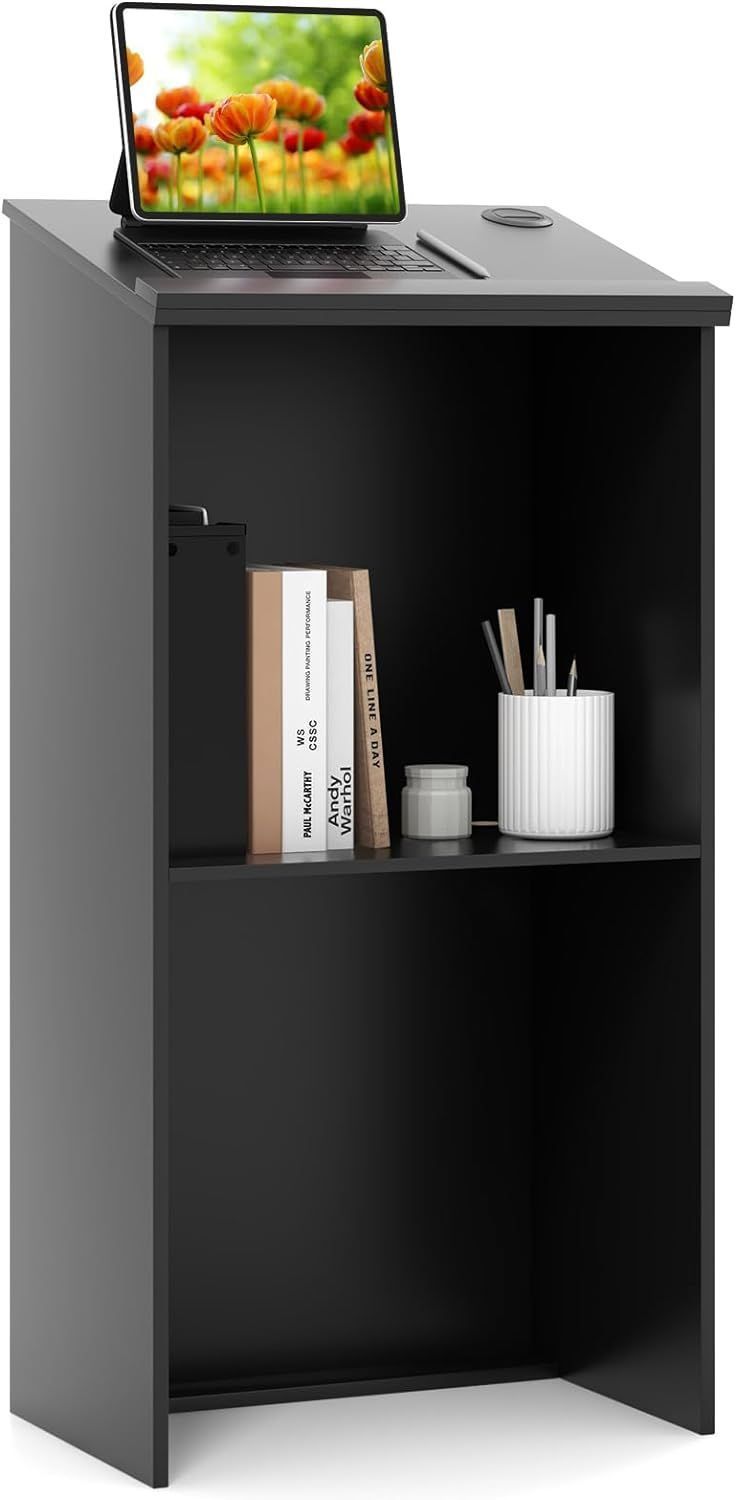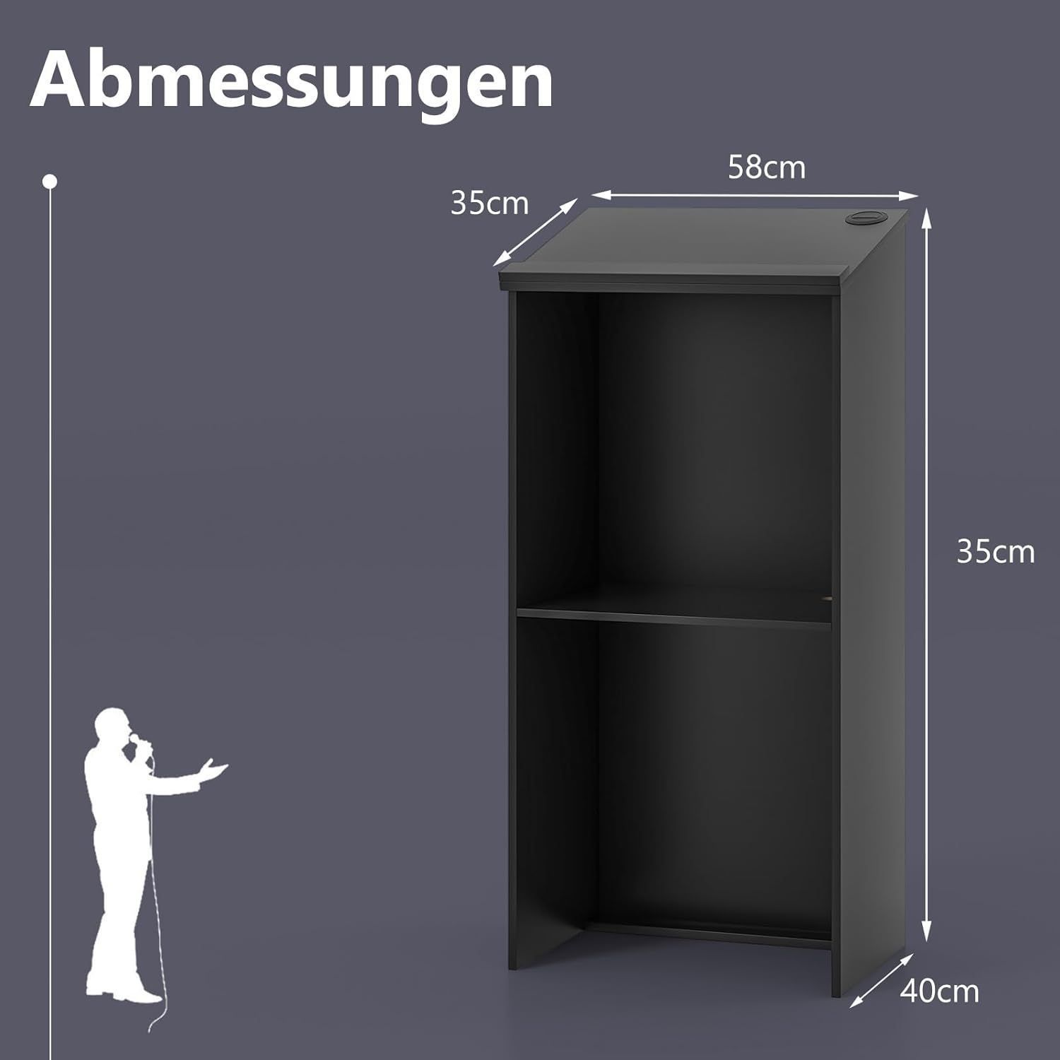 Stehpult, Rednerpult mit Ablagefläche und Kabeldurchführungen, Stehtisch, Schwarz