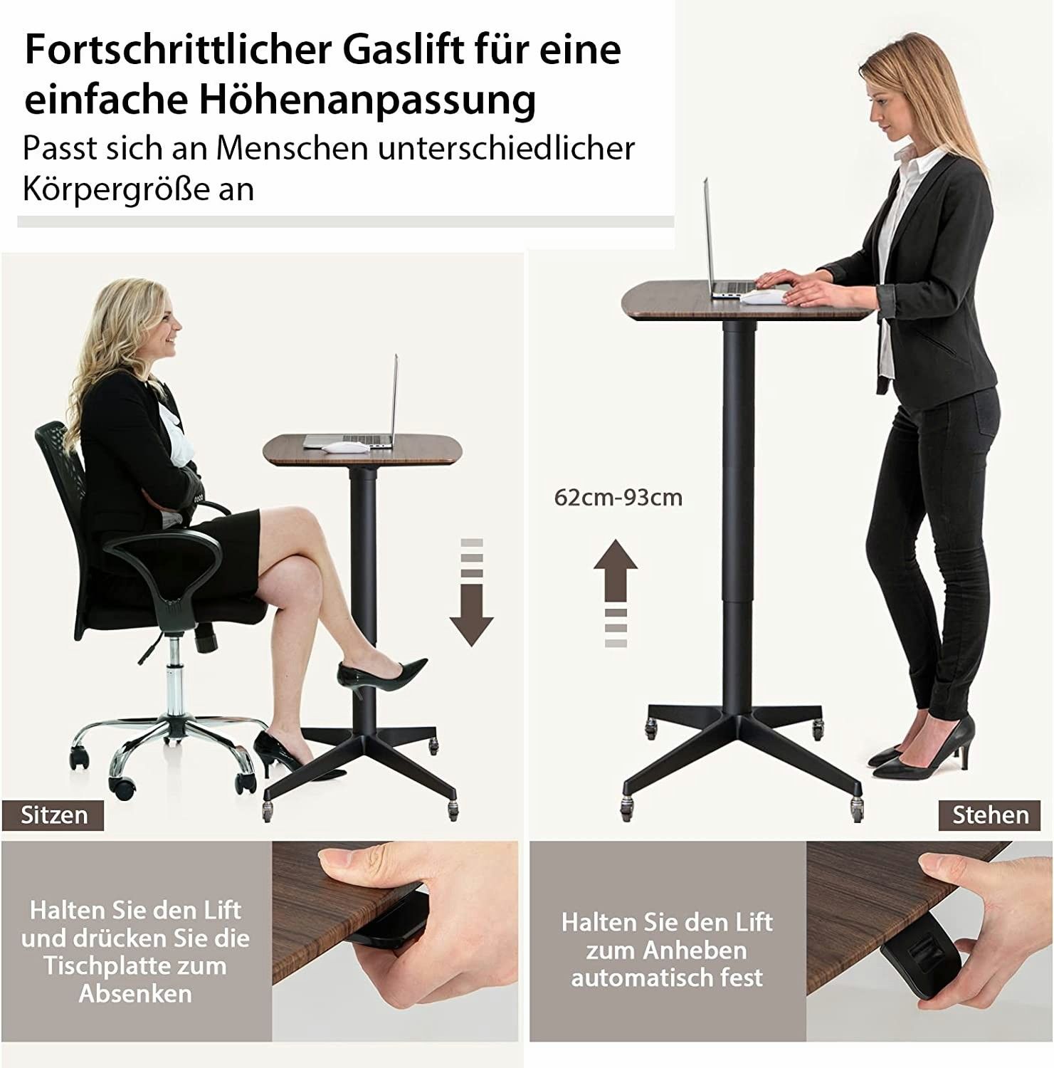 Stehschreibtisch höhenverstellbar, Sitz-Steh Schreibtisch mit Rollen, Pflegetisch