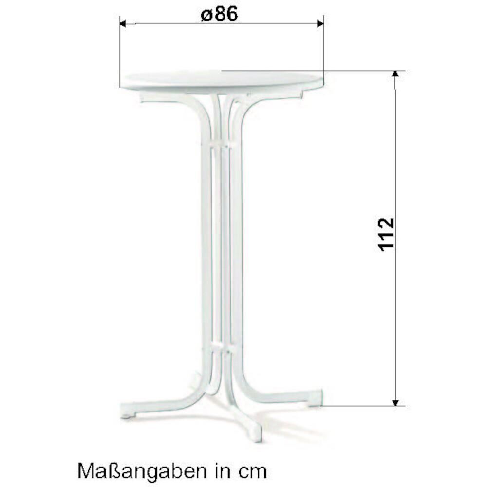 • Stehtisch 70 cm klappbar weiß Gestell aus Stahl in weiß, Tischplatte aus Sevelit® in