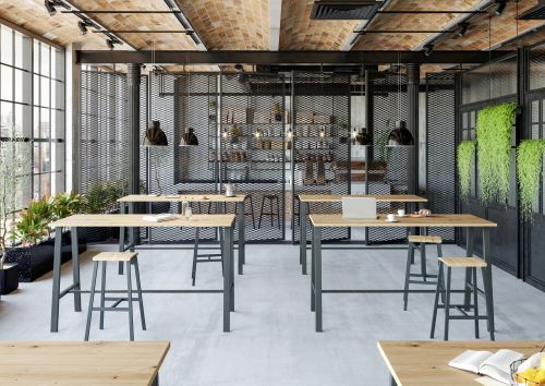 Stehtisch - Bistrotisch 175 x 68 x 104,2 cm (B x T x H). Dekor Tischplatte wählbar. Gestell Industrieoptik - ab Lager lieferbar.
