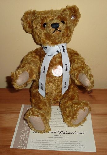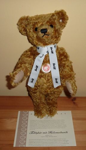 Auflösung meiner Steiff-Sammlung Steiff Teddy mit Halsmechanik mit Zertifikat, ohne Karton, Knopf, Fahne 038242 und Brustschild 36 cm aus Mohair wenn man am Schwänzchen dreht bewegt sich der Kopf Herstellung 2005