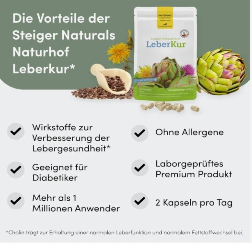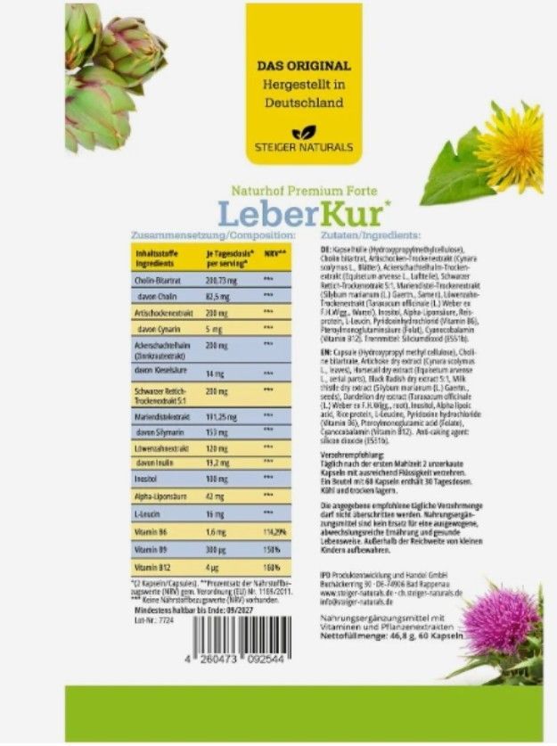 Steiger Naturals Leber Kur 60 Kapseln-Mariendistel, rtischocke, holin, itamine