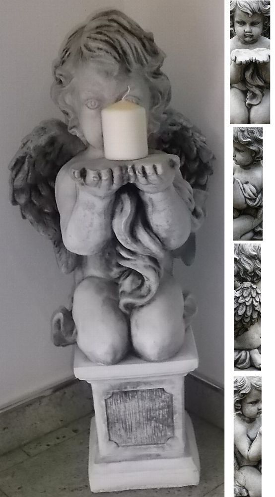 Steinfigur Engelkind Kerzenhalter Engel sitzende 29kg Frostfest Wasserfest Stein. NEU