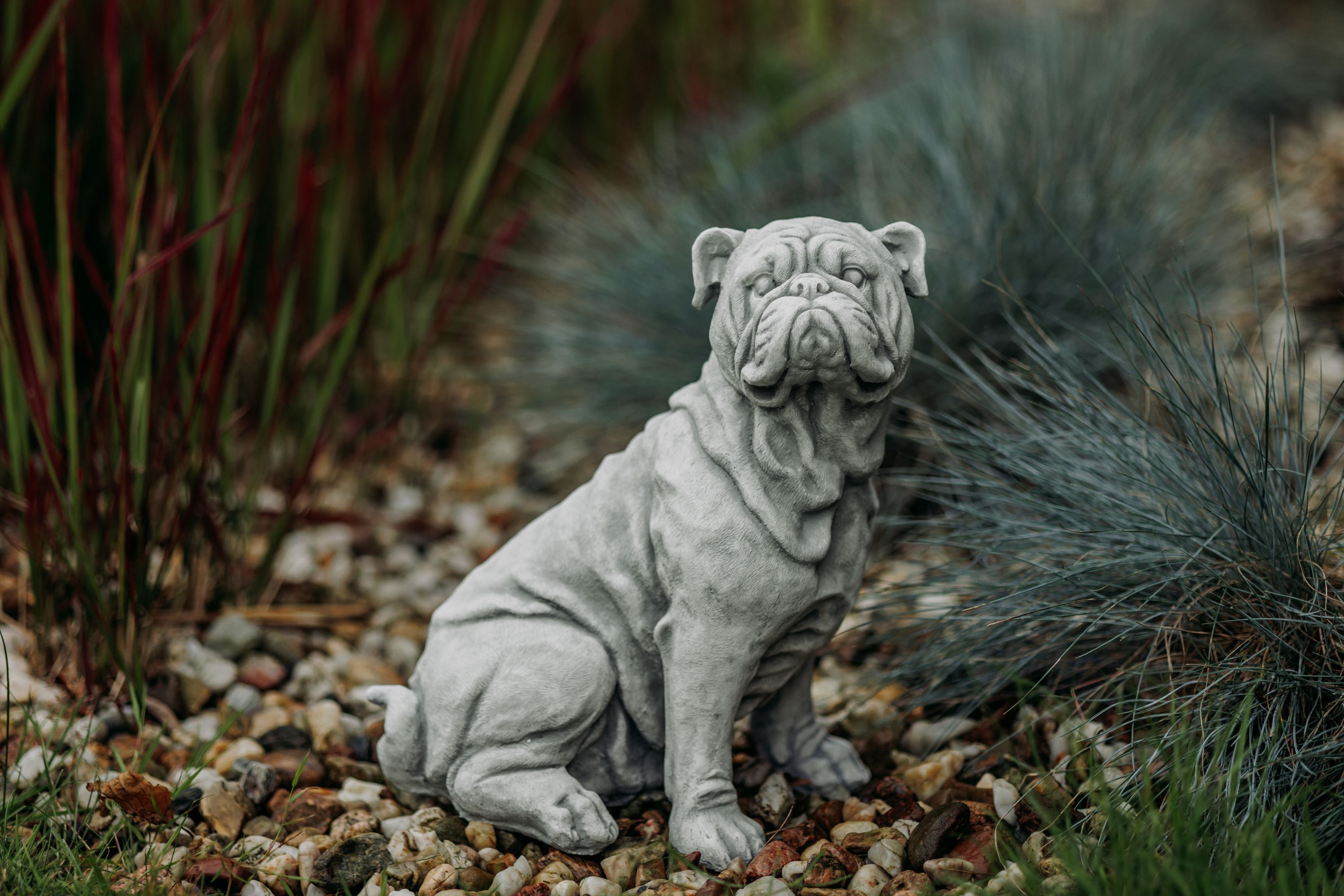 Steinfigur Englische Bulldogge Hund Bully Höhe 32 cm 10 kg frostsicher Steinguss