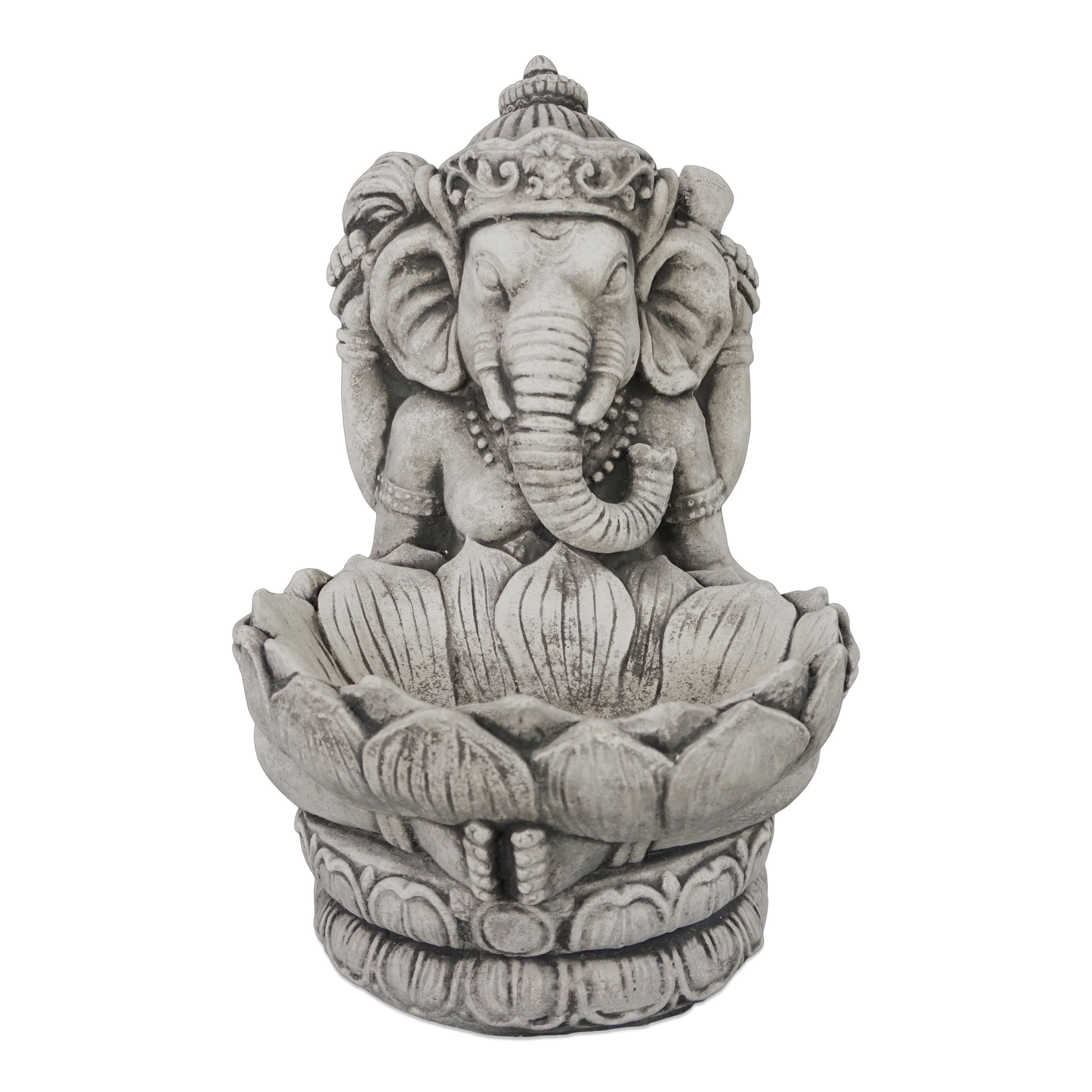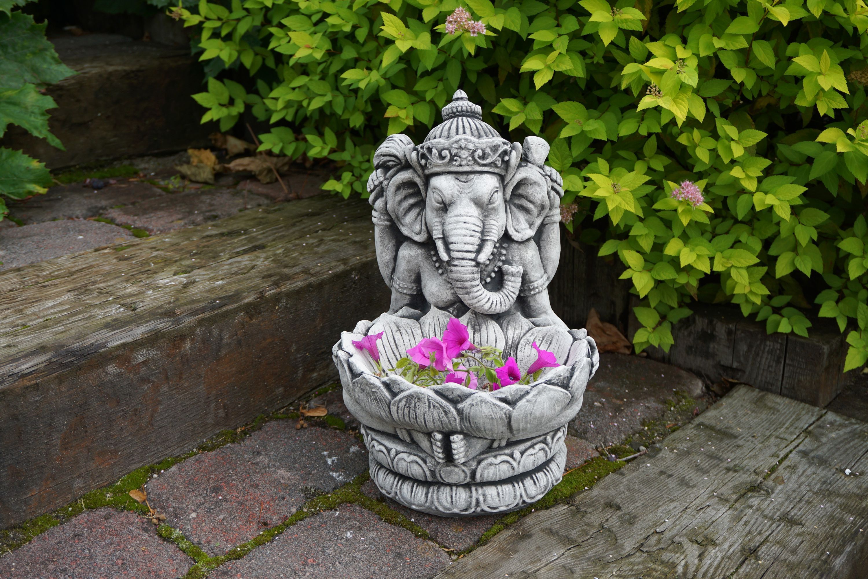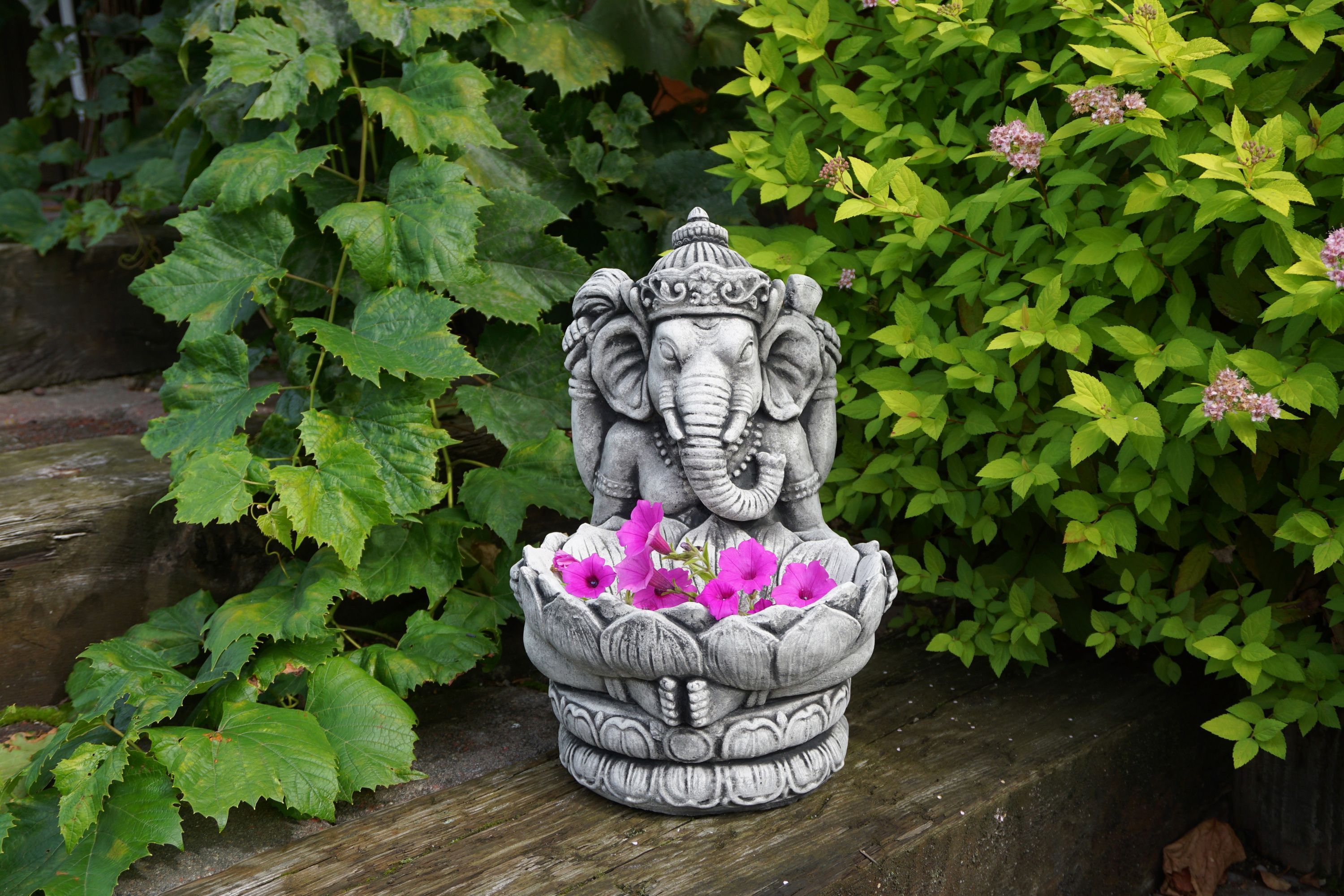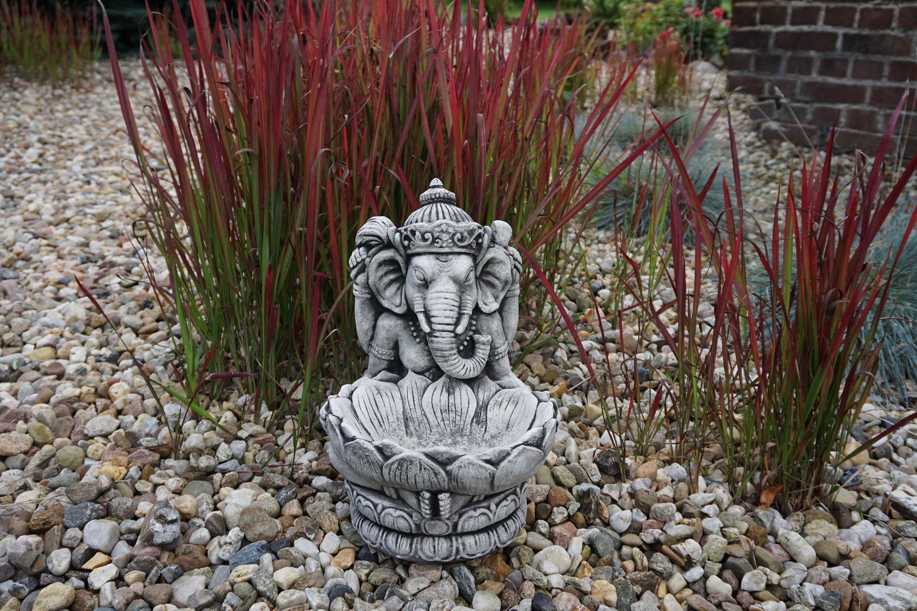 Steinfigur göttlicher Ganesha mit Schale (Schwarz) 34 cm aus Steinguss frostfest