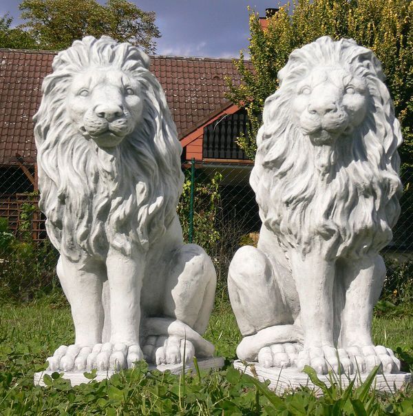 • Steinfigur Löwe Löwen Paar Leo H 53cm Torwächter Steinguss Steinfigur