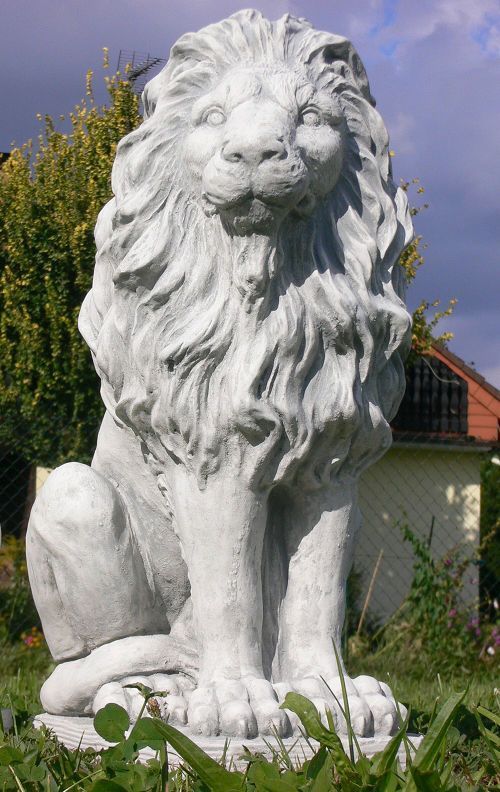 • Massive Steinfigur Großer Löwe Leo Blickrichtung mittig aus Steinguss frostfest