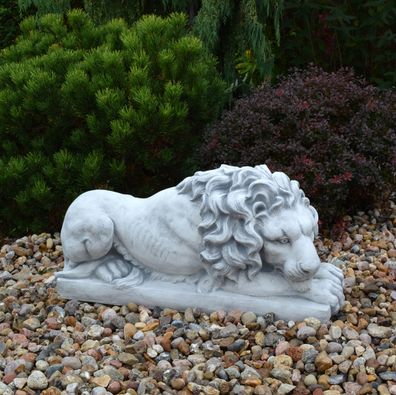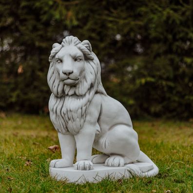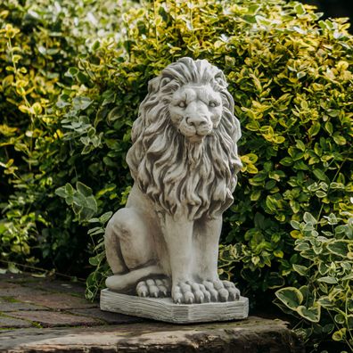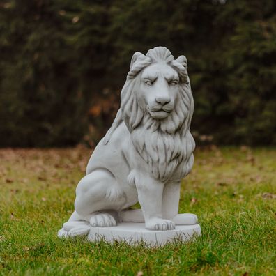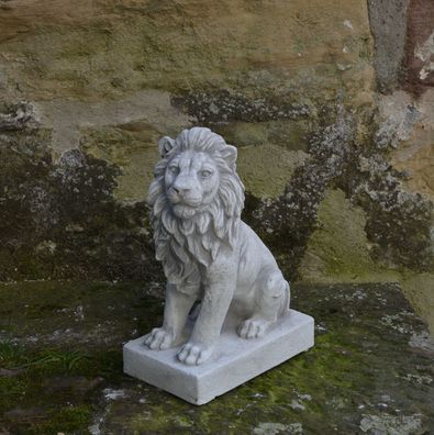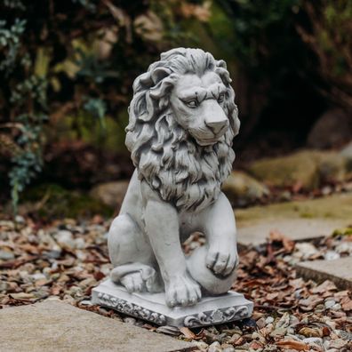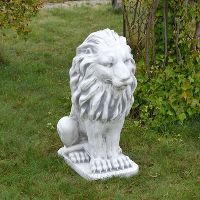 Steinfigur Löwe Löwen Leo links blickend H 53cm Torwächter Steinguss Steinfigur