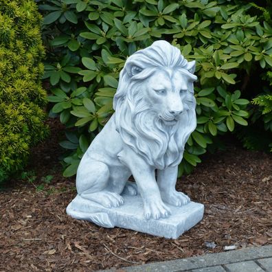 • Steinfigur Löwe Löwen Leo rechts blickend H 53cm Torwächter Steinguss Steinfigur