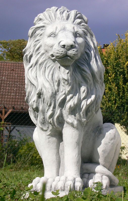 • Massive Steinfigur Großer Löwe Leo Blickrichtung mittig aus Steinguss frostfest