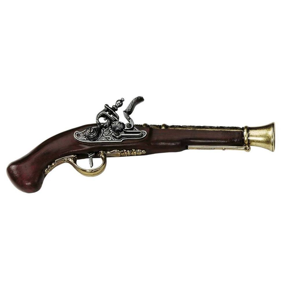 Steinschlosspistole langer Lauf gold-silber 37cm Deko