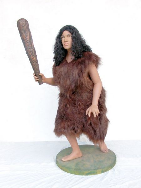 Steinzeitmensch Frau lebensgroß 150cm für draußen aus Polyresin