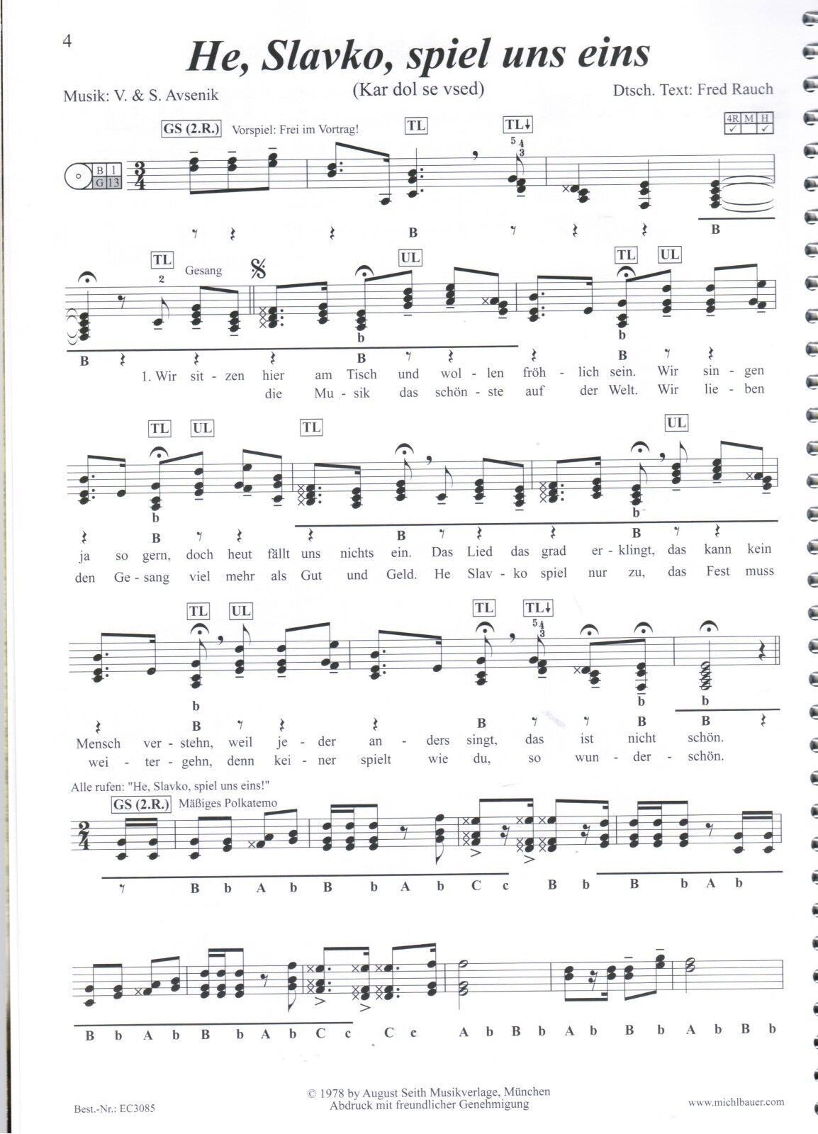 Steirische Harmonika Noten : Avsenik He Slavko spiel uns eins - mittelschwer