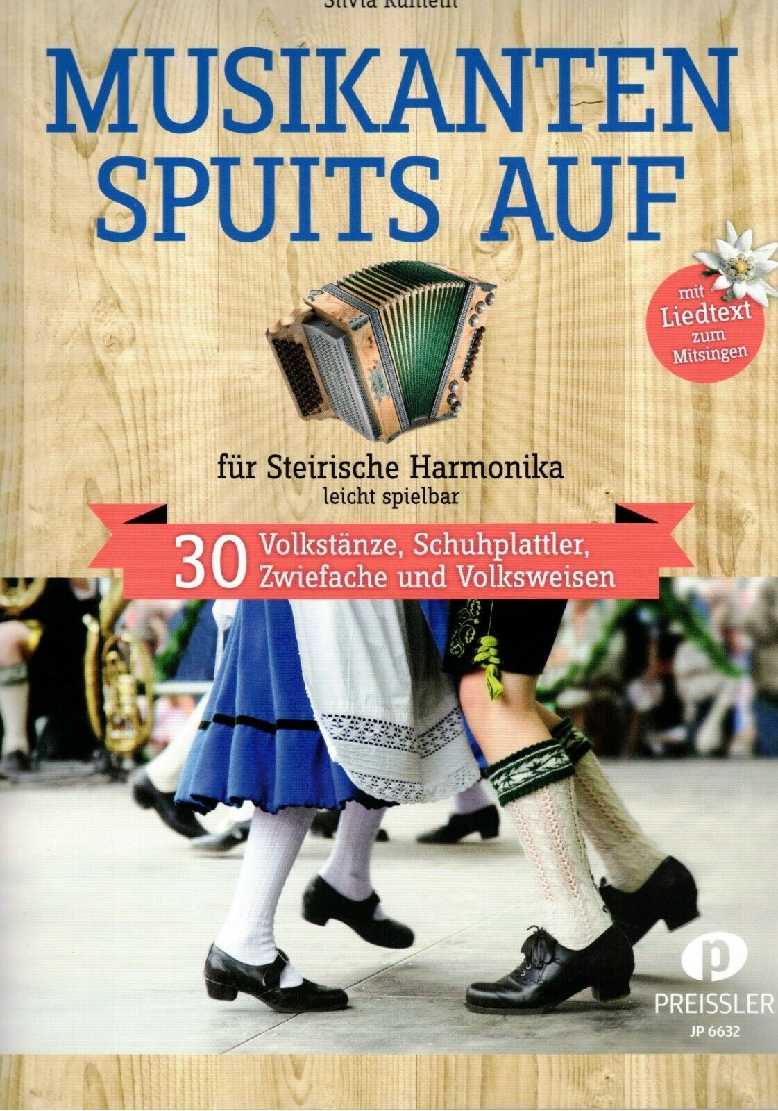 Musikanten Spuits Auf 30 Volkstänze, Schuplatttler, Zwiefache und Volksweisen für Steirische Harmonika von Silvia Kumeth und Akkordbezeichnung - leicht spielbar Griffschrift Verlag : Preissler JP 6632 Seitenanzahl: 51 Format: Din A4 Zustand: NEUWARE Schwierigkeitsgrad : leicht bis Mittelschwer (mein