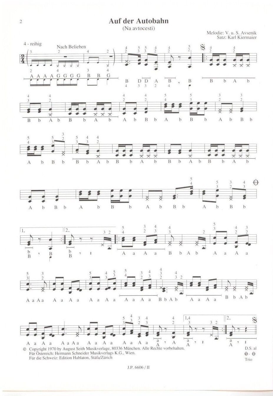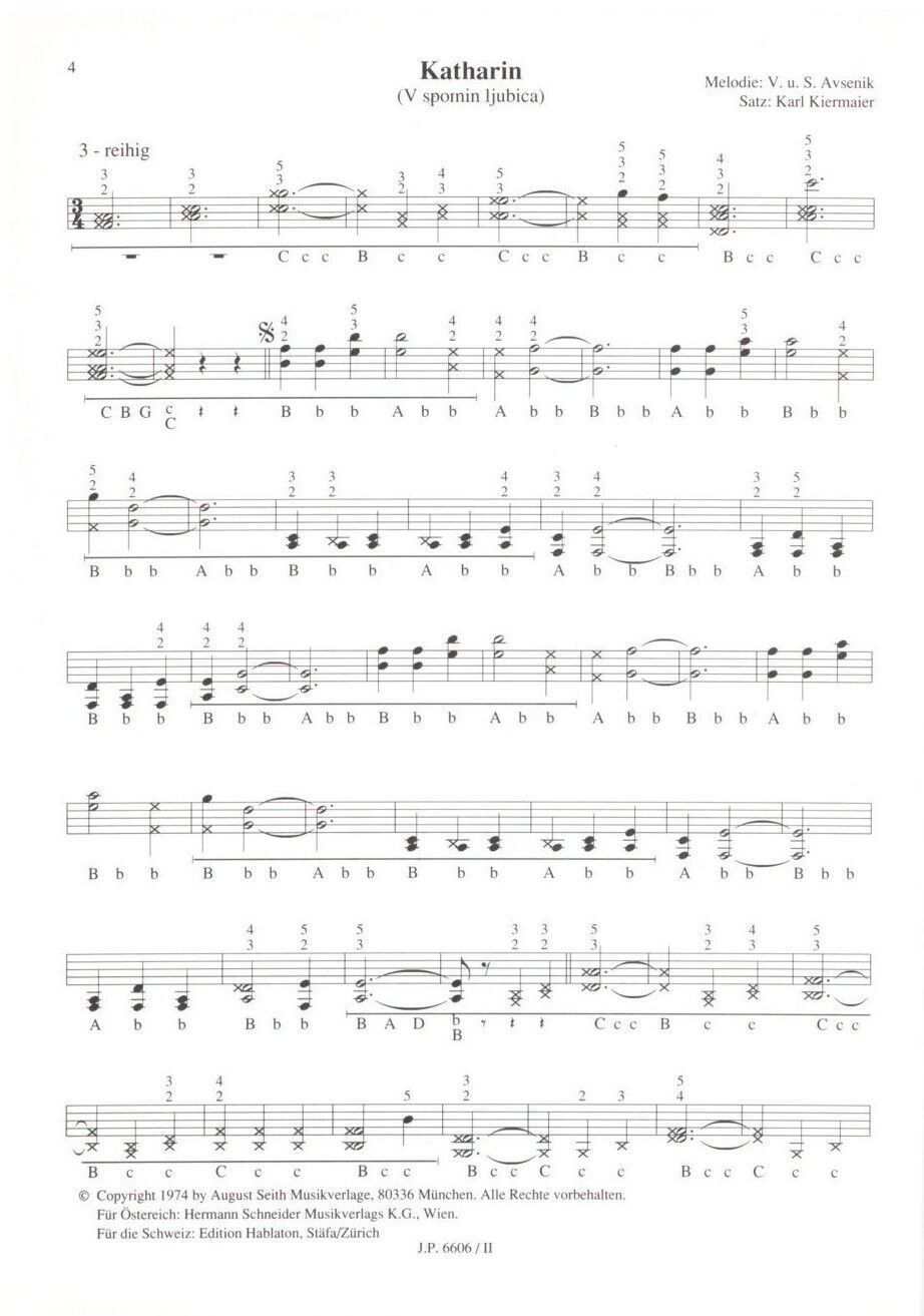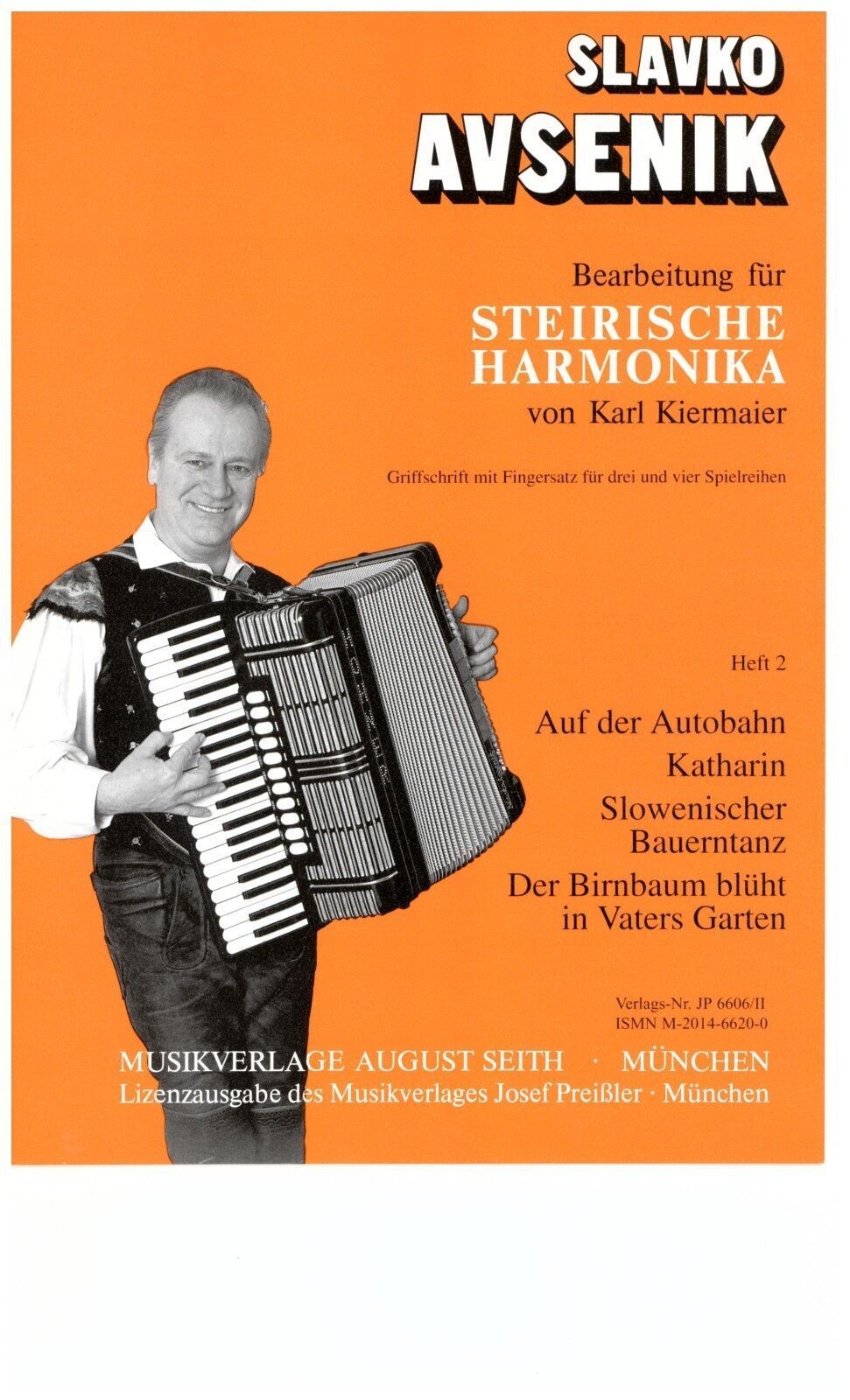 Slavko AVSENIK - Bearbeitung für Steirische Harmonika -- Heft 2 Bearbeitung: Karl Kiermaier für dreireihige Steirische Harmonika Griffschrift Verlag : Preissler Verlag JP 6606 2 Seitenanzahl: 9 Format: Din A4 Zustand: NEUWARE Schwierigkeitsgrad : mittelschwer Inhalt: Auf der Autobahn Katharin Slowen
