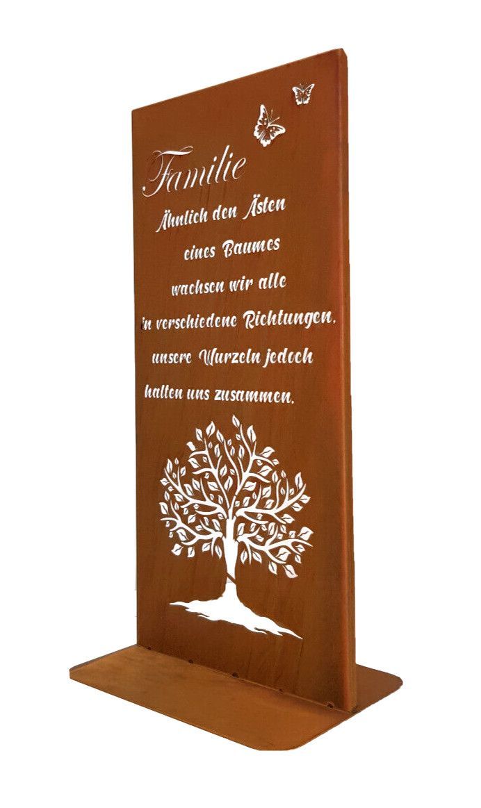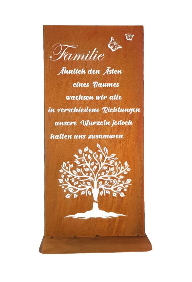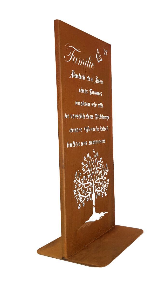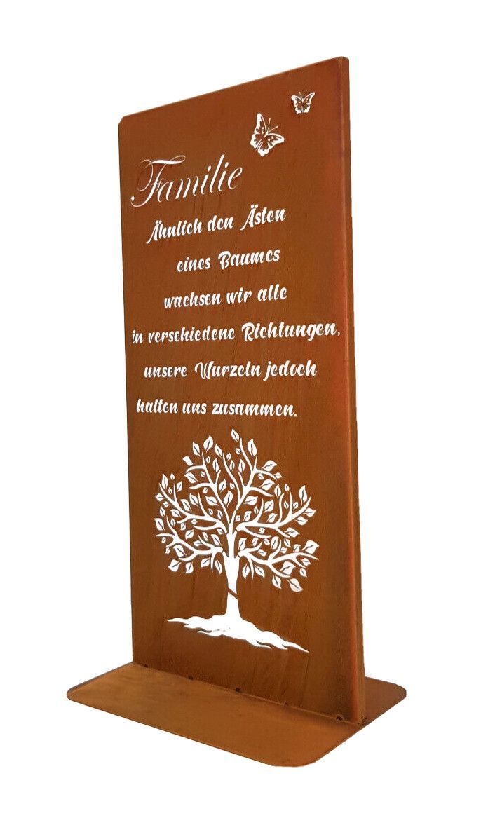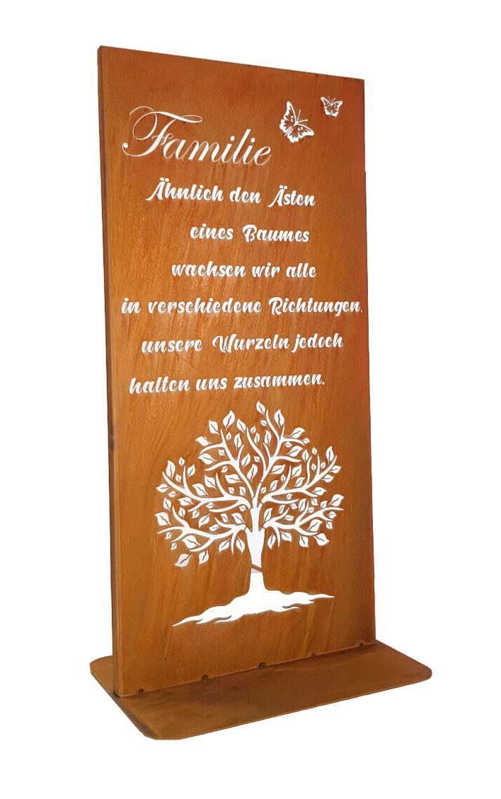 Stele Lebensbaum Familie Höhe ca. 80 cm Rostdeko Edelrost Gartenschild Deko