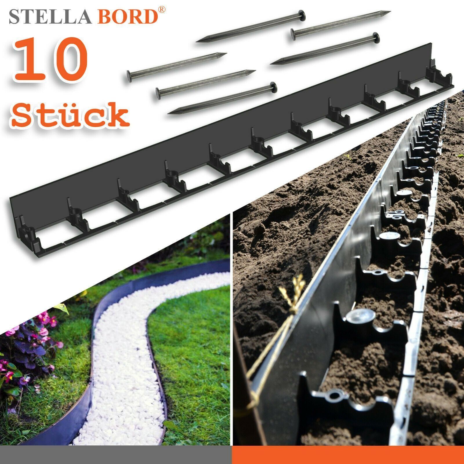 Stella Bord 10 x Rasenkante 8x100cm Beeteinfassung Mähkante & 50 Nägel