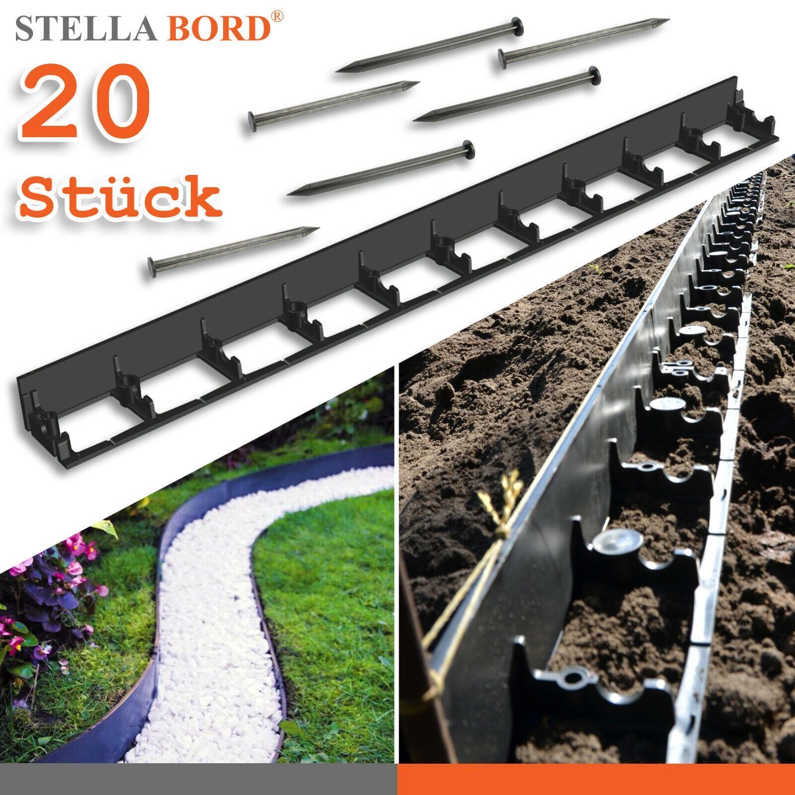 Stella Bord 20 x Rasenkante 6x100cm Beeteinfassung Mähkante & 100 Nägel