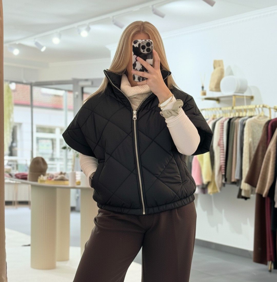 Steppweste Damen Marie Schwarz Onesize XS-XL Frauen Stepp Weste mit Reißverschluss