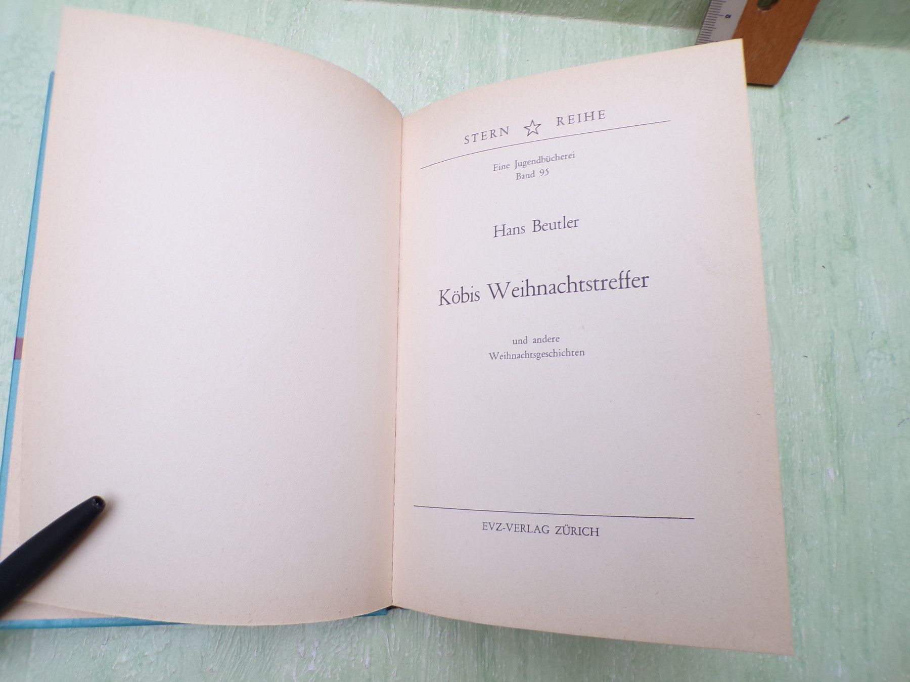 ... Erinnerungen ..... . . Köbis Weihnachtstreffer . und andere Weihnachtsgeschichten von Hans Beutler Stern Reihe Jugendbücherei Band 95 Umschlagentwurf Klaus Brunner (C)1967 EVZ-Verlag , Zürich . Großdruckschrift , Hardcover Zustand : Cover minimal bestoßen, Seiten gut+ . . Abkürzungen: Buchschnit