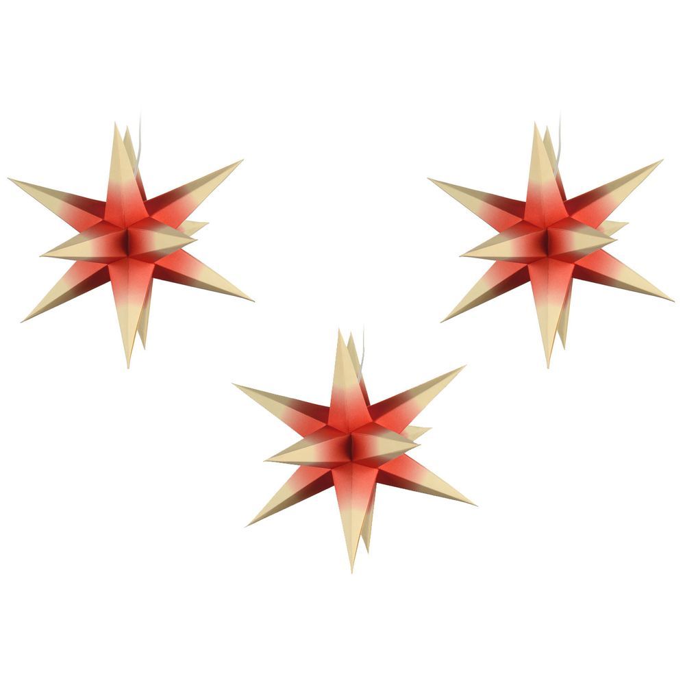 Sterne klein 3er Set - Rot mit weißen Spitzen, 16 cm