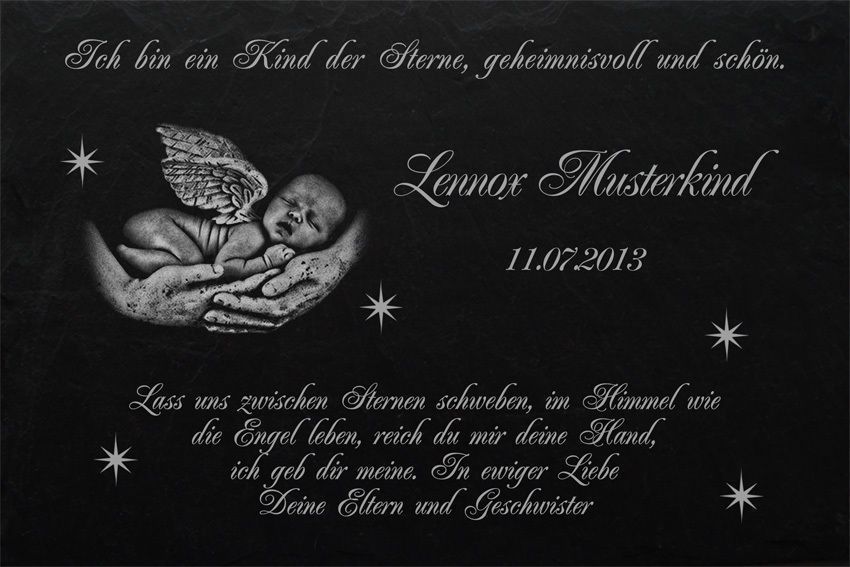 • Sternenkind Grabtafel Grabplatte Grabstein-027 - LASER-Wunschgravur - 50 x 30 cm