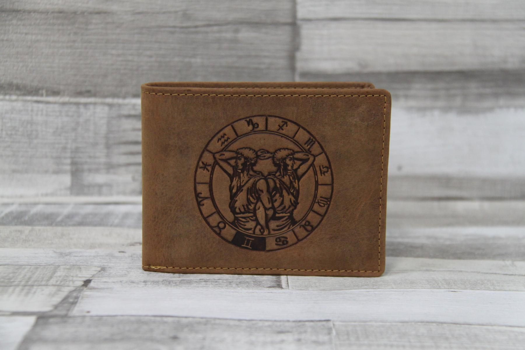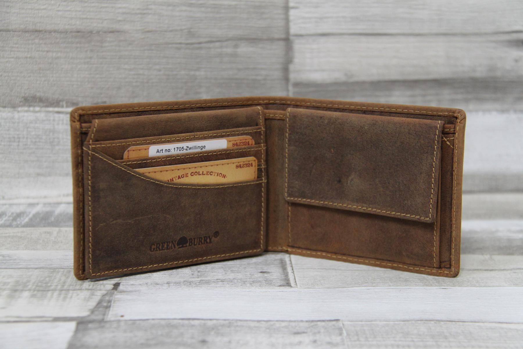 Greenburry Sternzeichen Zwillinge Geldbörse Zwillingsbörse Scheintasche Antikleder braun