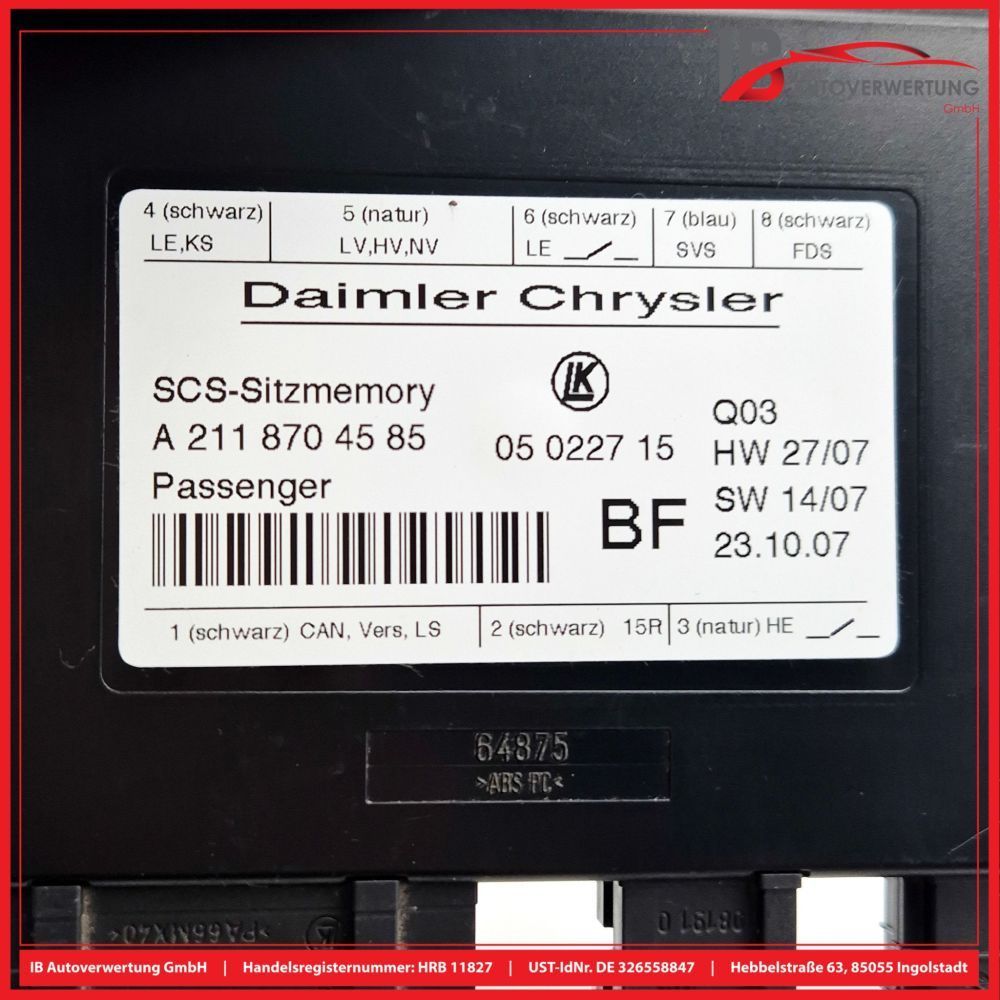 Steuergerät Sitz Sitzverstellung A2118704585 Mercedes-benz W203 W203 W211 LK