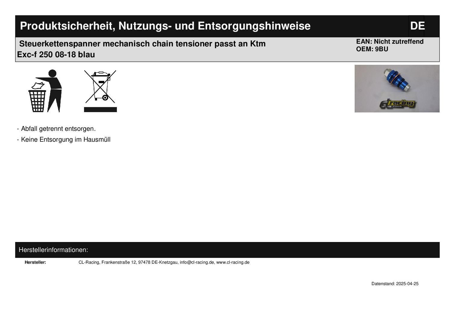 Steuerkettenspanner mechanisch chain tensioner passt an Ktm Exc-f Sx-f 250 350 blau In dieser Auktion gibt es folgenden Artikel zu kaufen: mechanischer Steuerkettenspanner (siehe Foto) Modell: passend für KTM EXC-F 250 Bj.: 2017 - 2018 EXC-F 350 Bj.: 2012 - 2018 SMR 450 Bj.: 2008 - 2012 SX-F 250 Bj.