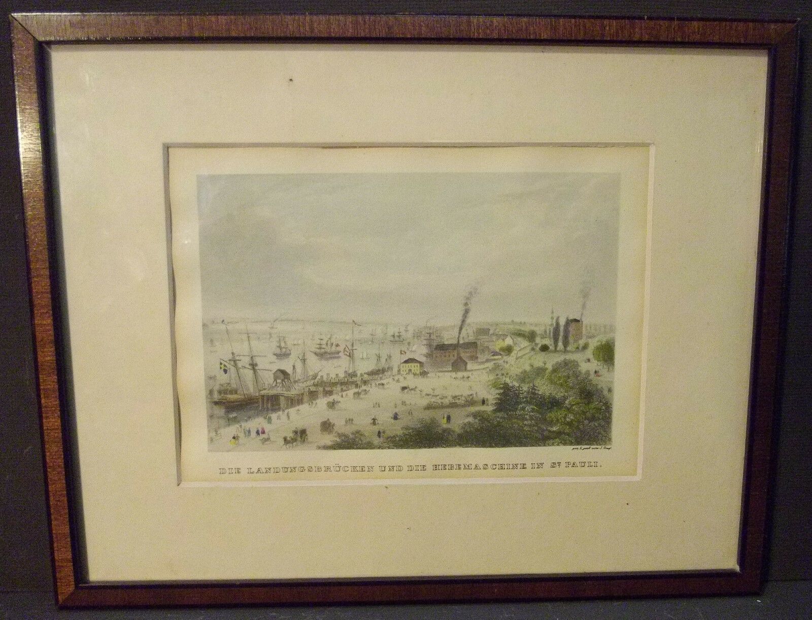 Original-Kupferstich um 1860. Im stilvollen Mahagoni-Rahmen. Motiv: Hamburg, Die Landungsbrücken u. d. Hebemaschine in St.Pauli . Gez. u. gestochen: J.Graaf Maße : Rahmen H 23,B 29 cm. Antikes am Deich - Inh: Oliver Kipp-Trense G M T Sprache erkennen Afrikaans Albanisch Arabisch Armenisch Aserbaidsc