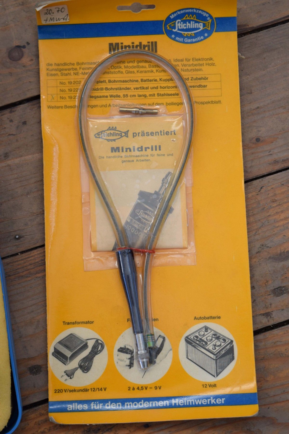 Stichling Typ 9/14 Mini Drill Blitz Komplettset Gerät ist funktionsfähig eher wenig genutzt mit geringen Gebrauchsspuren, guter Zustand und stabil Lieferumfang wie abgebildet Der Versand innerhalb Deutschlands ist kostenfrei und erfolgt per DHL Paket.