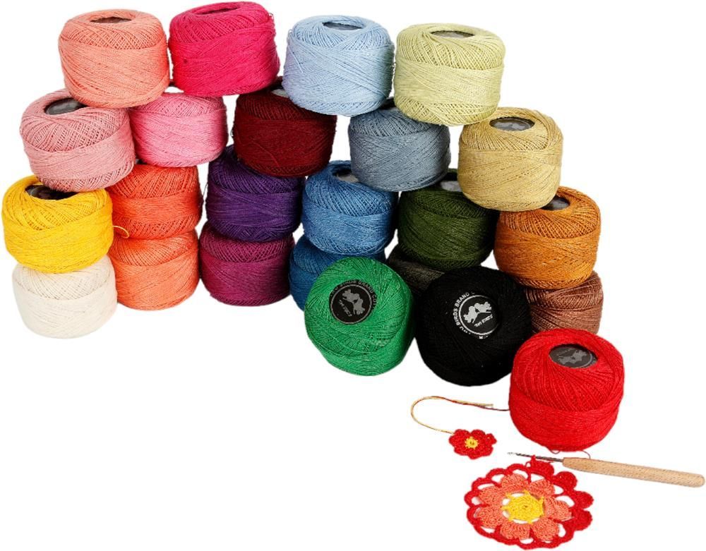 Stickgarn & Häkelgarn aus Baumwolle, Set 24 Knäuel á 20 g, verschieden farbig