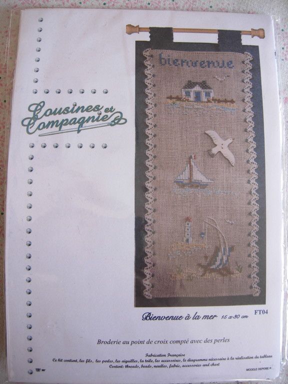Stickpackung mit Perlen - Wandbehang "Bienvenue a la mer"