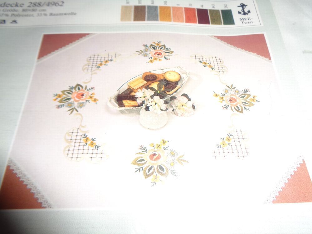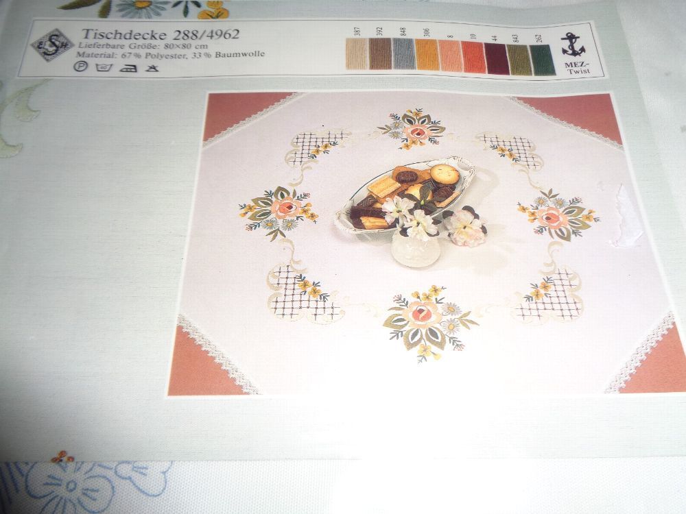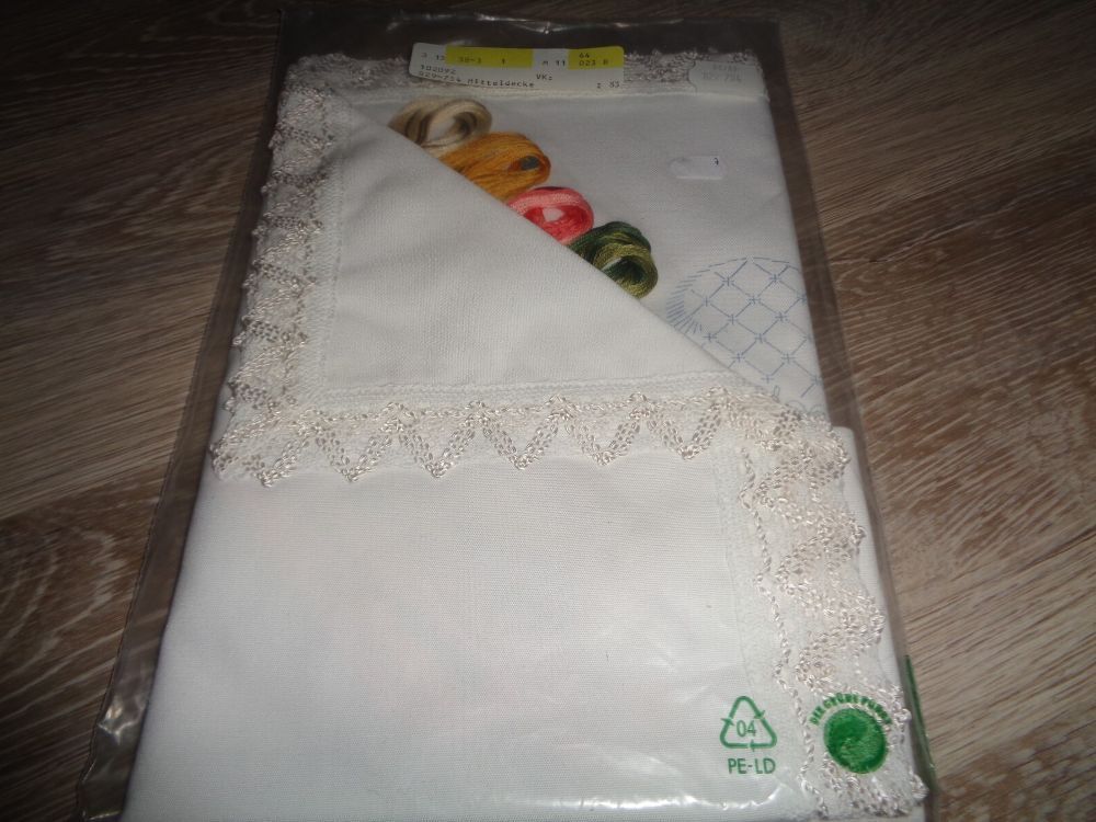 Biete in dieser Auktion an: komplette Stickpackung exclusive Tischdecke Blumenmotiv 80 x 80cm Tischdecke mit Spitze umsäumt gekauft, aber noch unbenutzt Da ich viele weitere Artikel im Angebot habe, schaut einfach mal durch. Vielleicht ist das passende noch dabei.Ich verschicke die Ware natürlich zu