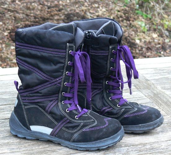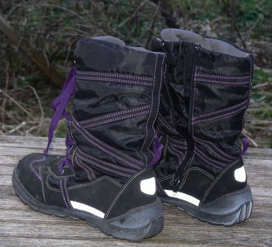 Allwetter-Stiefel TCM, Größe 36-37 Eine Besonderheit sind reflektierende weiße Flächen hinten und an der Außenseite. Etikett innen auf der Sohle: TCM Tchibo Certified Merchandise 36 37 3,5 4 276825 Aufschrift unten auf der Sohle: 36 37 3,5 4 Sohle: mit Profil Länge unten: ca. 27 cm Höhe: ca. 25 cm G