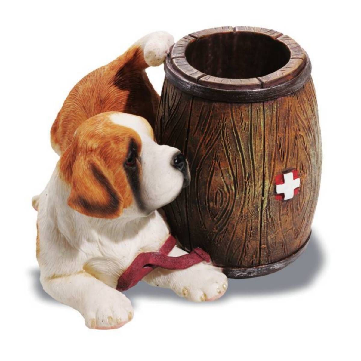 Stiftehalter liegender schweizer Rettungshund Bernhardiner am Fässchen