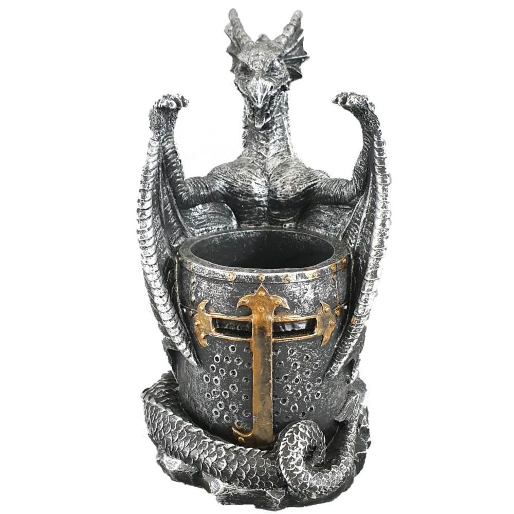Stiftehalter mittelalterlicher Ritterhelm vom Drachen gehalten