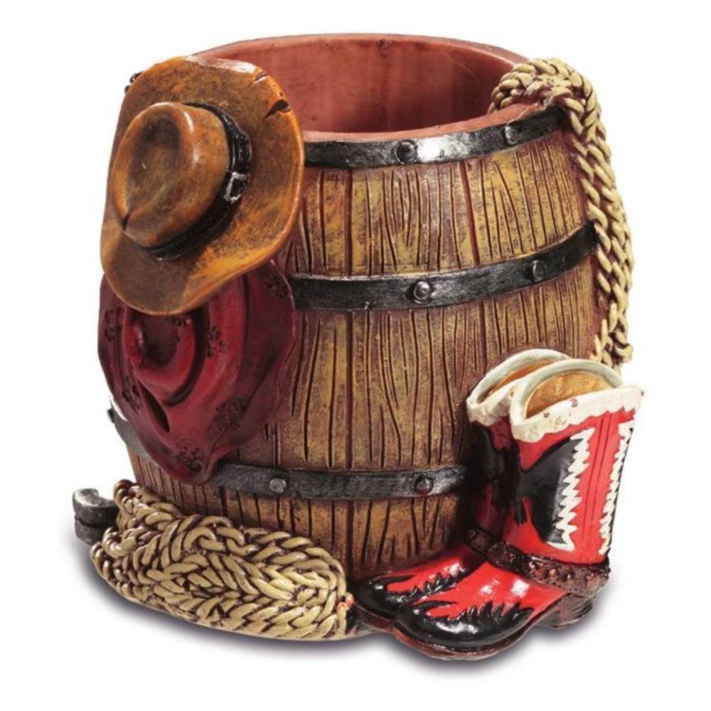 Stiftehalter Western Fass mit Stiefel, Lasso und Cowboyhut