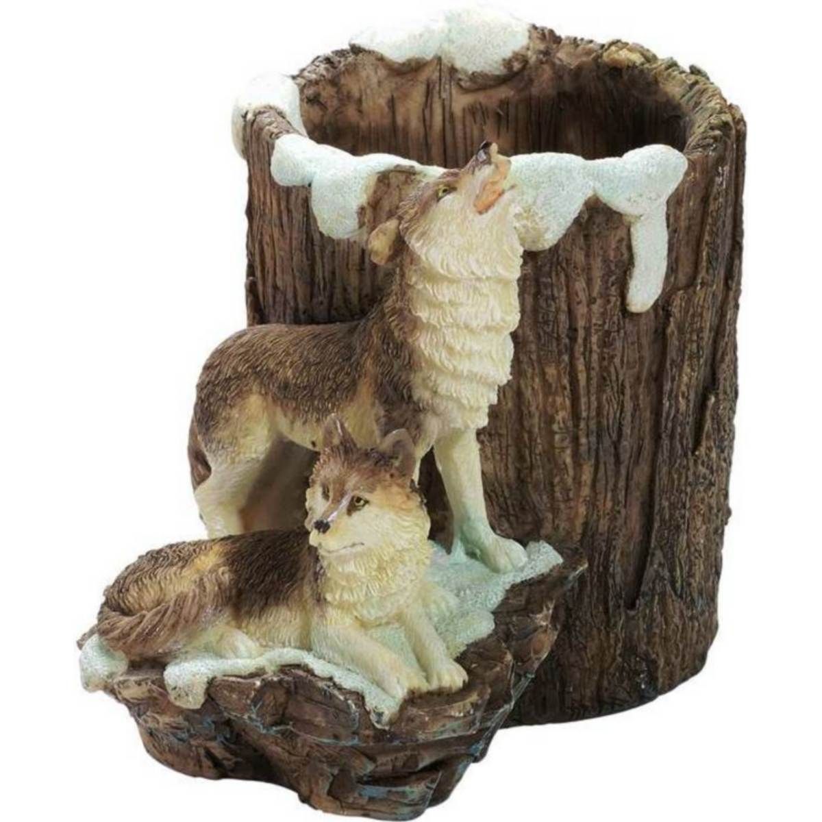 Stiftehalter zwei Wölfe am schneebedeckten Baumstamm