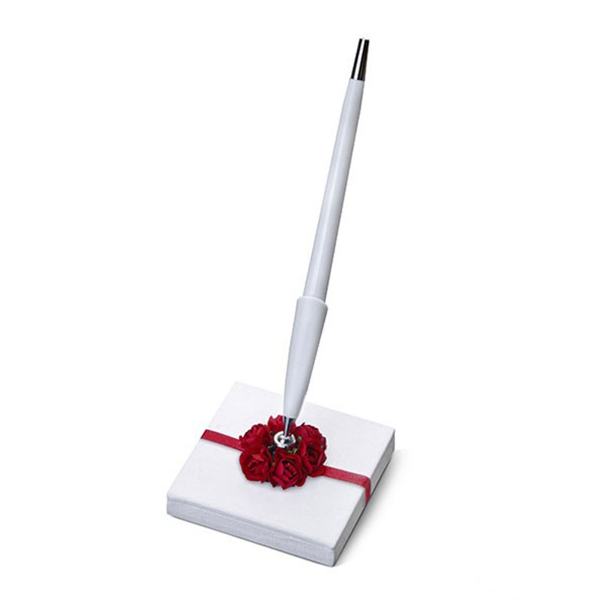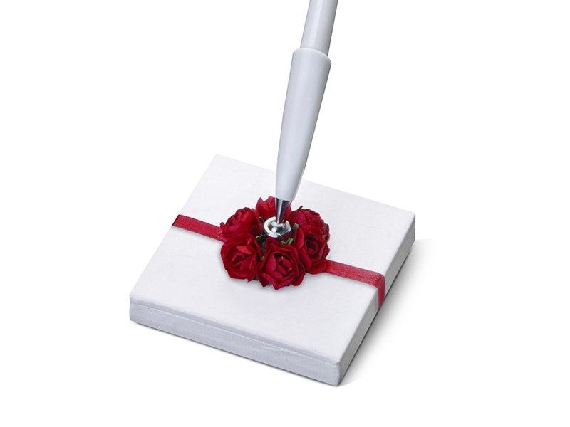Stifthalter mit Kugelschreiber 8x8x16cm weiß / rot