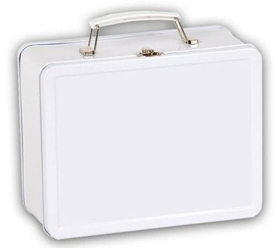 • stabile Metallbox im Kofferstil weiß mit Tragegriff und Metallschließe