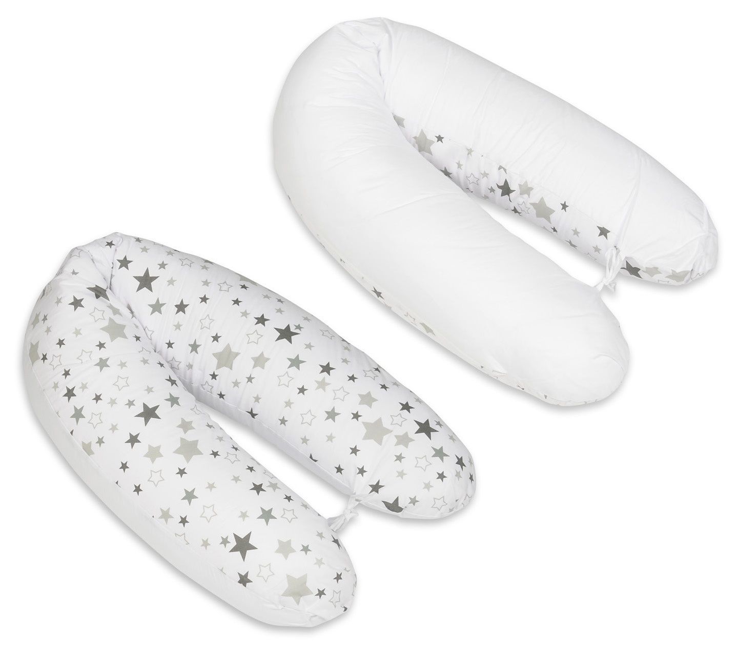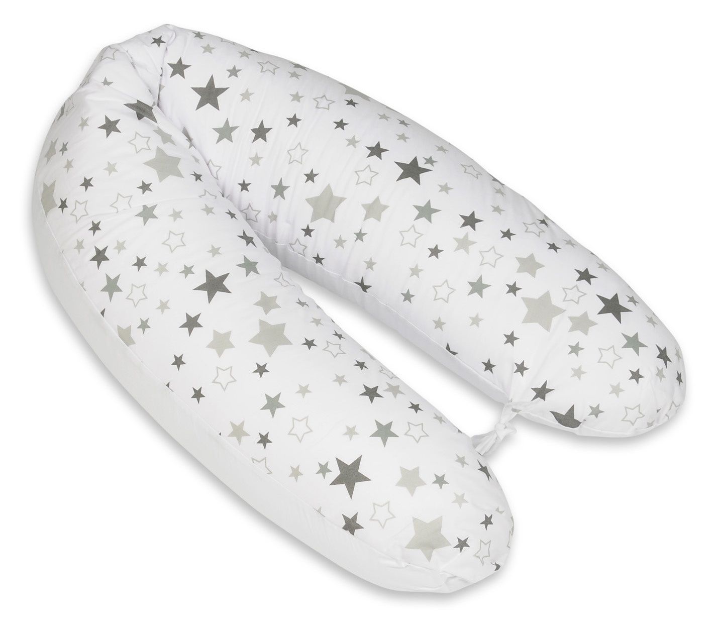 Stillkissen - Schwangerschaftskissen - 100% Baumwolle - weiße und graue Sterne