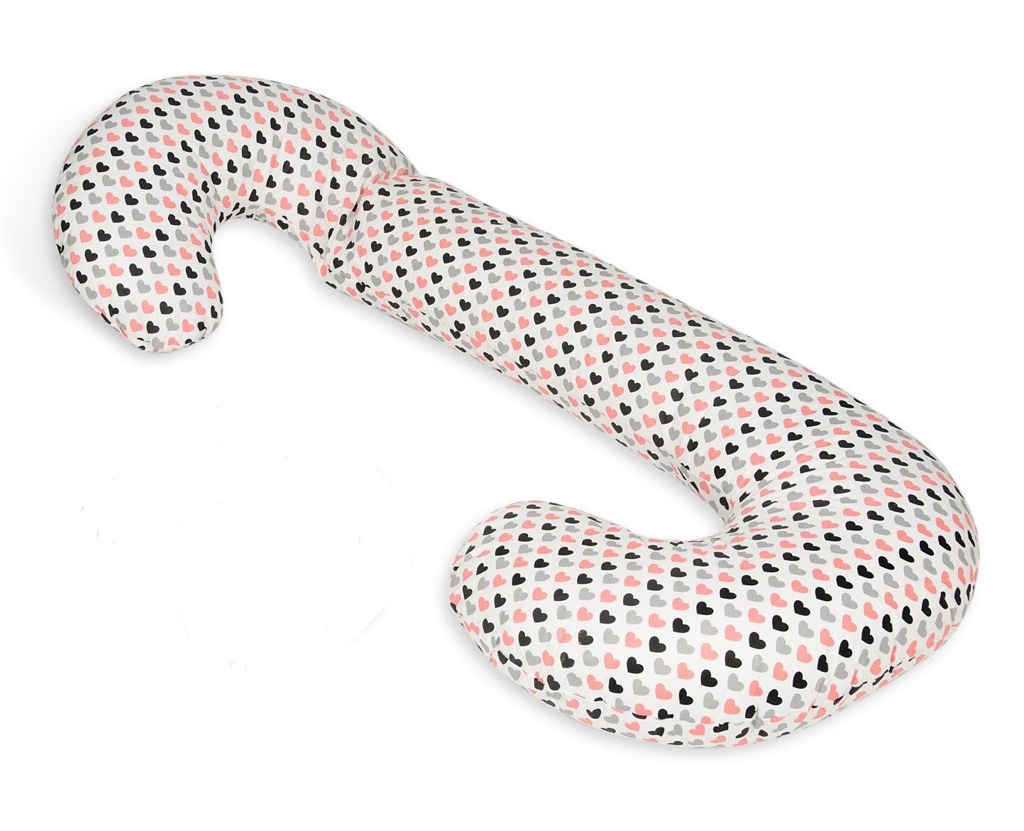Stillkissen - Schwangerschaftskissen - 100% Baumwolle - rosa-schwarz-graue Herzen