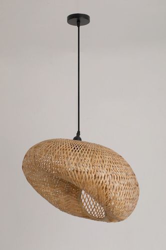 Stilvolle Hängelampe BEMIDI S boho klein Geflochtenes Bambusblatt Farbe: Natur Ø40cm