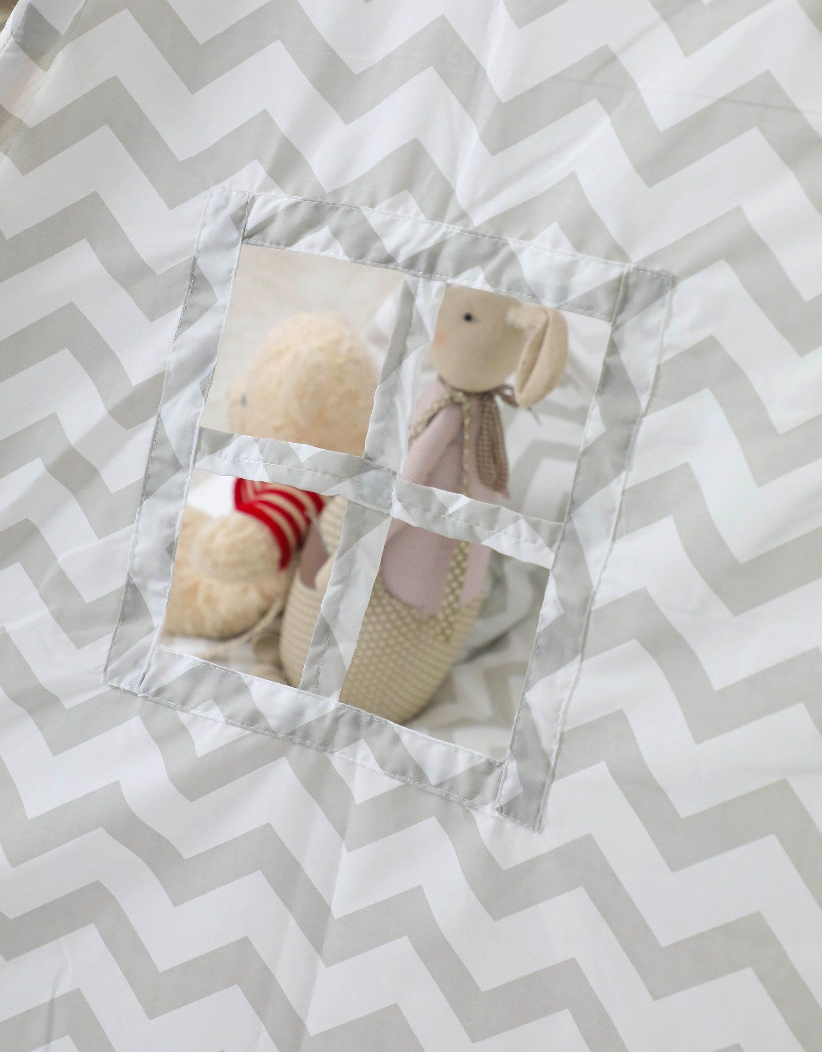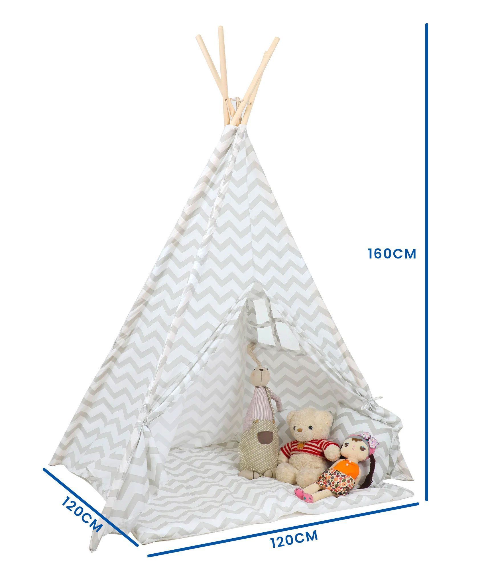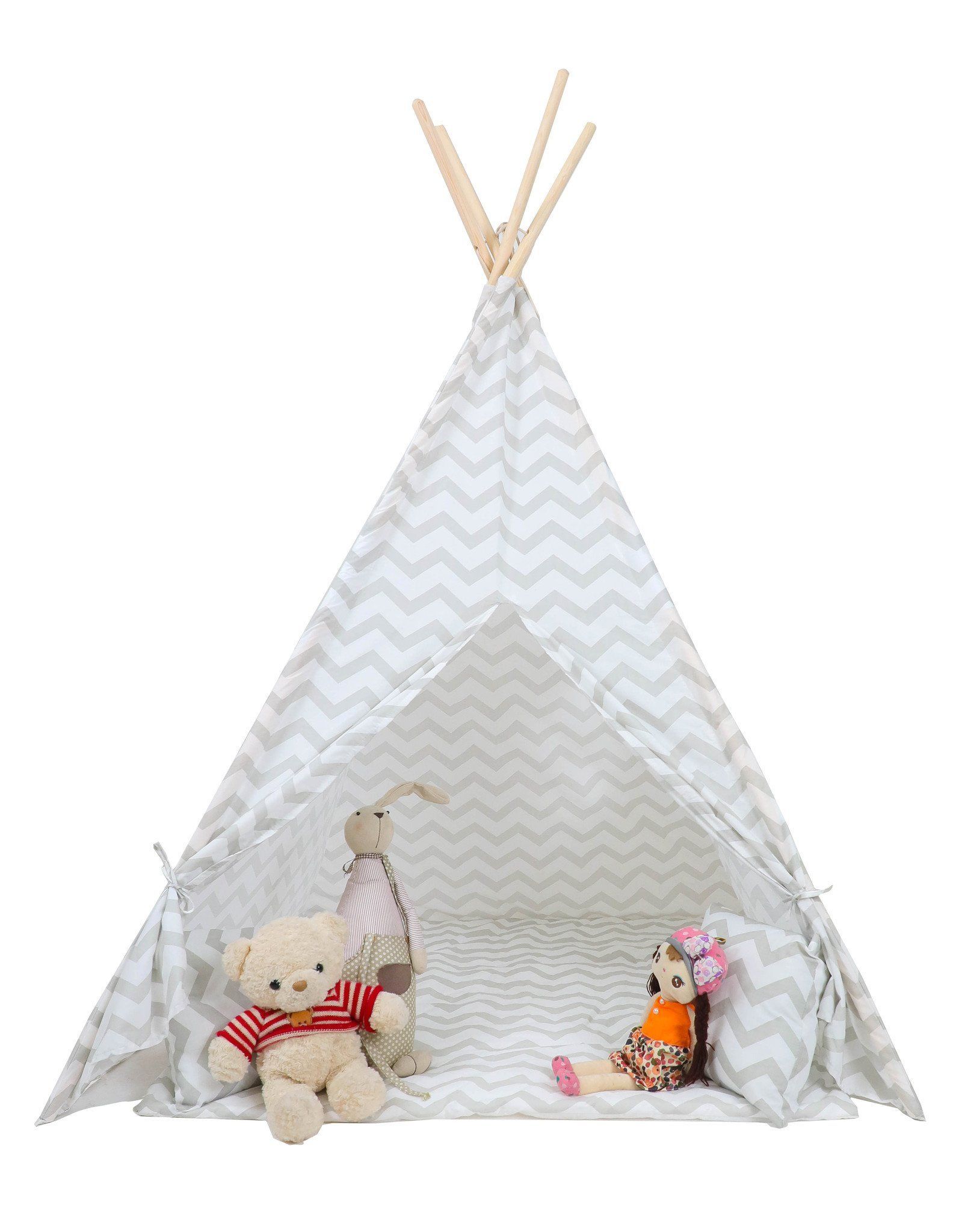 Graues Tipi mit Zickzack-Muster, inkl. Matratze & Kissen - Modernes Design